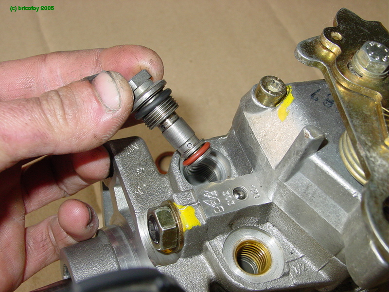 ici on a plutot une pompe "à deux étages" puisqu'il y a une pompe de gavage (ou "pompe de transfer" ou "d'alimentation") dans la PI, c'est une pompe à palettes qui alimente la partie HP de la pompe (le piston rotatif) à une certaine pression qui est régulée par un régulateur de pression non réglable de type cartouche (voir ci-dessous en illustration une photo empruntée à Bricofoy pour la bonne cause, j'espère qu'il ne m'en voudra pas)
