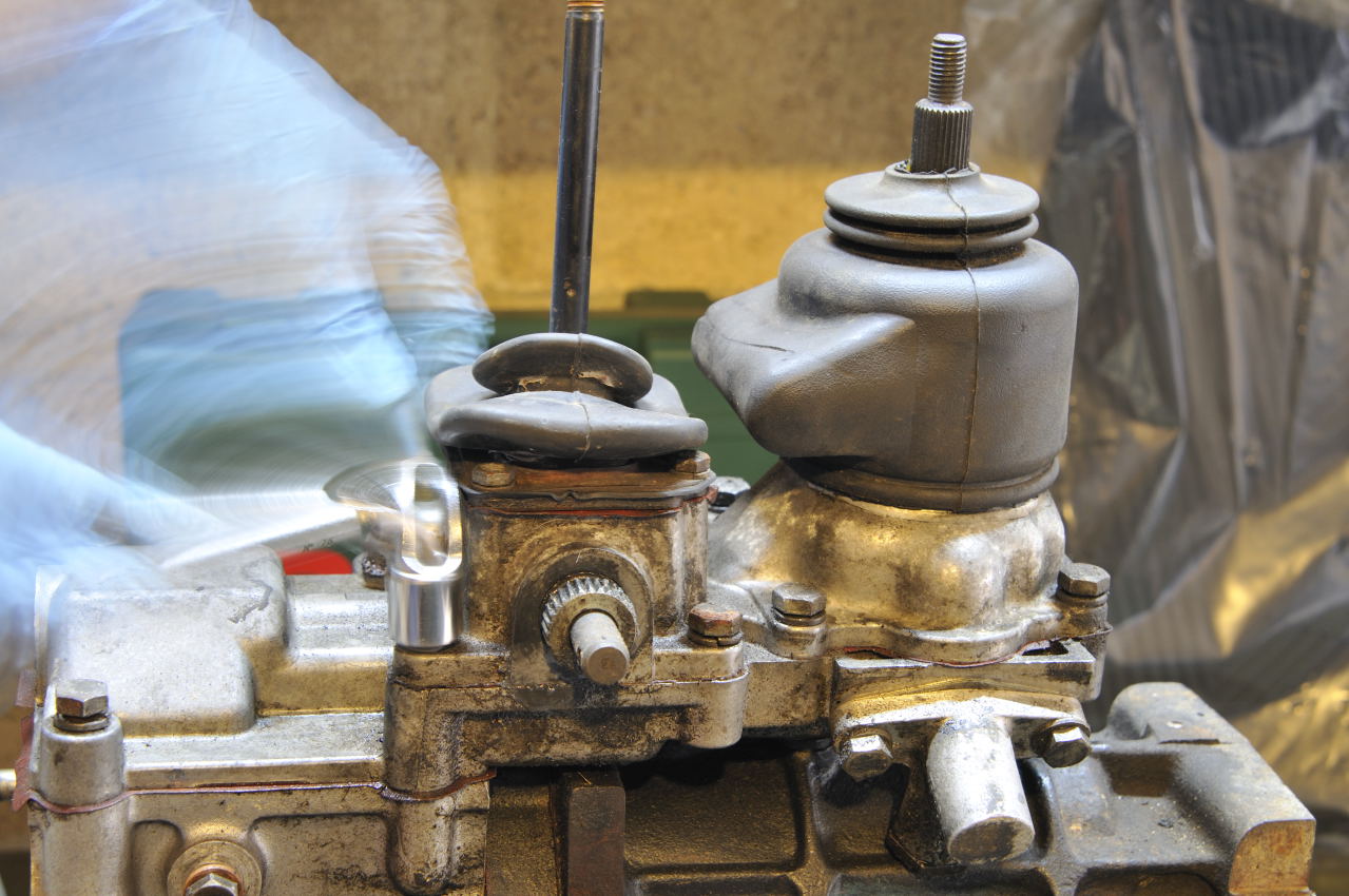 Il reste un roulement à aiguille dans le pignon fou de marche arrière et les commandes de l'axe de selection n'ont pas été complétement déssemblées