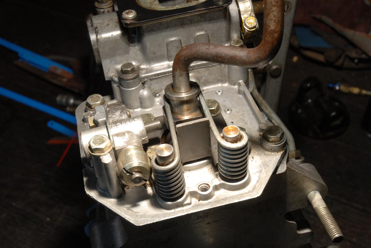 Dévisser les trois vis de fixation du couvercle de la pompe. Clef de 10. Il n'y a rien de plus à démonter pour la pompe. Ne pas essayer d'enlever le tube d'aspiration d'huile. Vérifier seulement qu'il n'est pas colmaté.