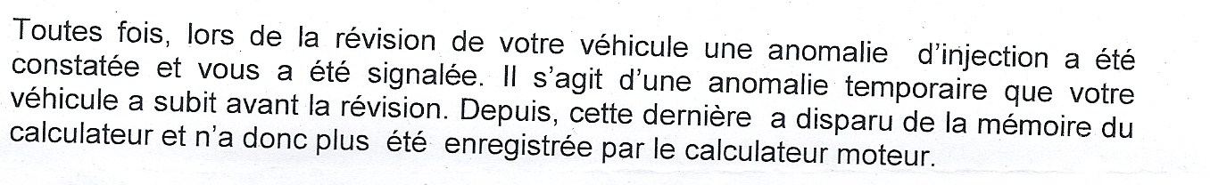 Je viens de recevoir un courrier du garage en question et je vous livre la partie concernant l'anomalie sur l'injecteur. Voila quand pensez vous?