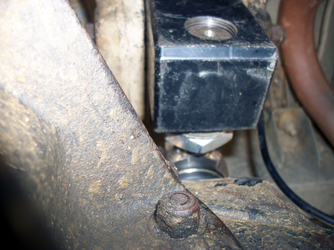 Vu l'espace restant de la tige filtée visible de la rotule installée, pas de risque pour le bloc en lui même, entre rotule et bras de a-frame, de venir toucher le "nez de pont" même en fort croisement de pont...il reste assez de place pour éviter cela...