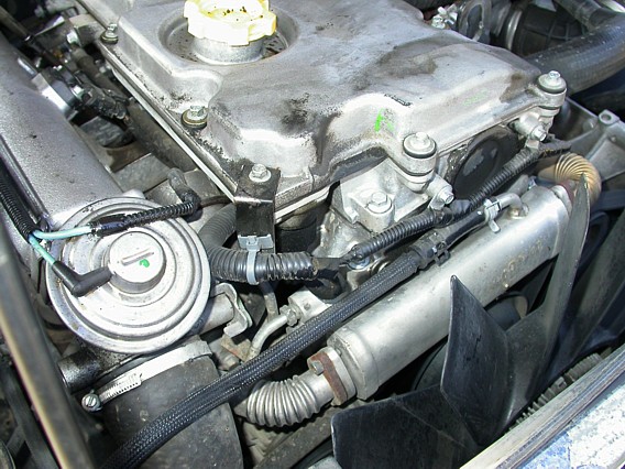 Ensuite, tu déposes l'EGR lui même du collecteur d'échappement et toujours du même côté tu dévisses (côté refroidisseur) la durite métallique reliant l'EGR au refroidisseur (l'espèce de petit pot d'échappement cylindrico-oval entre l'hélice et le moteur