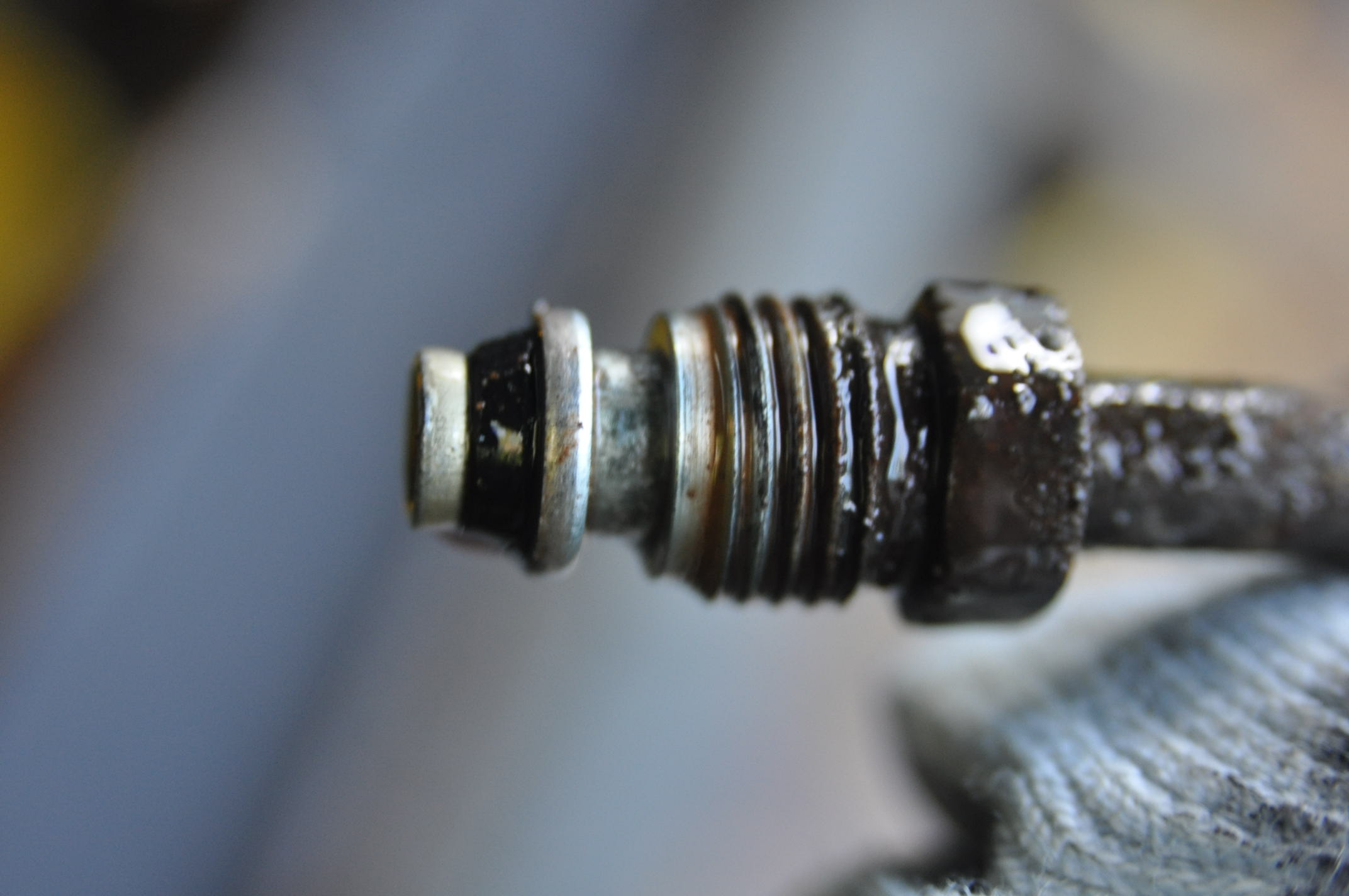 11) Voila, maintenant que le boitier de DA est par terre, tu peux voir la barre de raccordement courbé forgé sur le boitier de DA avec son écrou et sa rondelle.