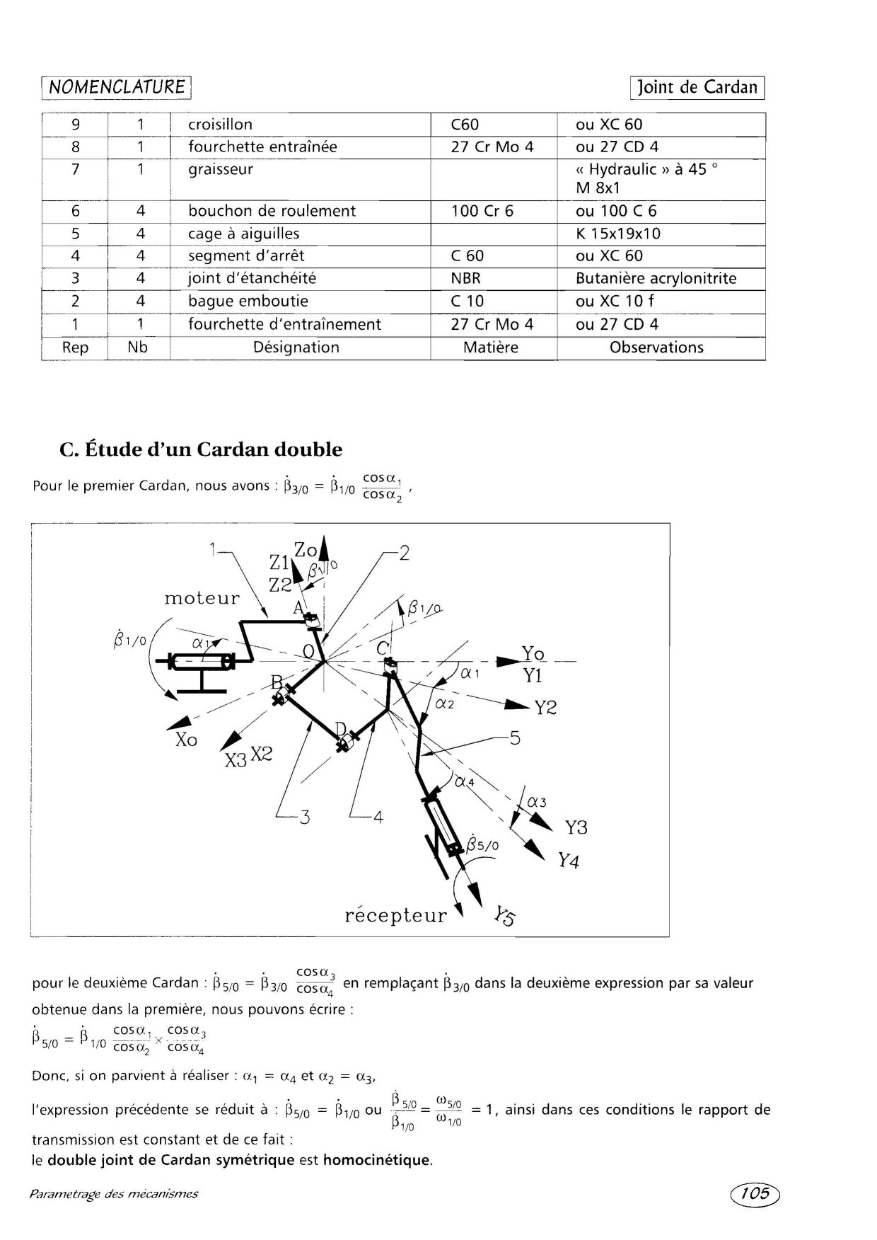 Voici donc un peu de théorie sur le paramètrage de mécanisme et trois exemples concrets : Le joint de Oldham, le joint de Cardan et le joint de Cardan double. Sinon, pour l'histoire : http://fr.wikipedia.org/wiki/Gerolamo_Cardanokebir31 a écrit :...Donc il va falloir que je me penche sur les joints à double-cardan. Je ne retrouve pas le sujet expliquant la théorie, si quelqu'un sait ou il se trouve, je lui serais reconnaissant. Et pour devancer un peu, je comprends le fonctionnement du double-cardan et j'accepte le fait qu'il soit homocinétique, ...