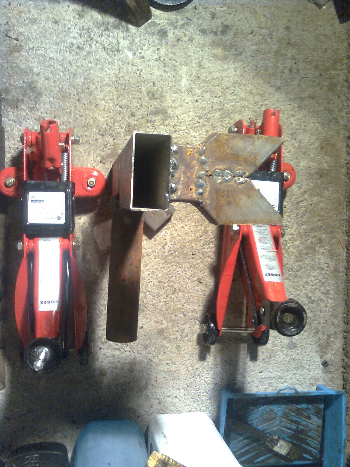 côté arbre de transmission arrière:hauteur du dessus du profilé au fond du vé: 4,5 cm (présenté à côté d'un cric d'origine et d'un cric modifié)