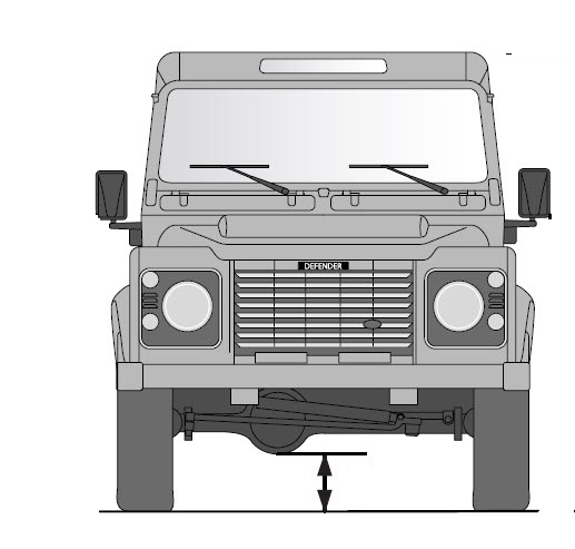 Garde au sol : La "garde au sol" est la distance en le sol, plat, et la partie la plus basse du véhicule. Pour le Defender c'est la distance entre le sol et la "boule" de pont contenant le différentiel, voir la figure suivante. Elle dépends uniquement de la taille des pneumatiques, de la pression de gonflage et de l'écrasement du pneu sous charge. Gaz Brown : voir HHO