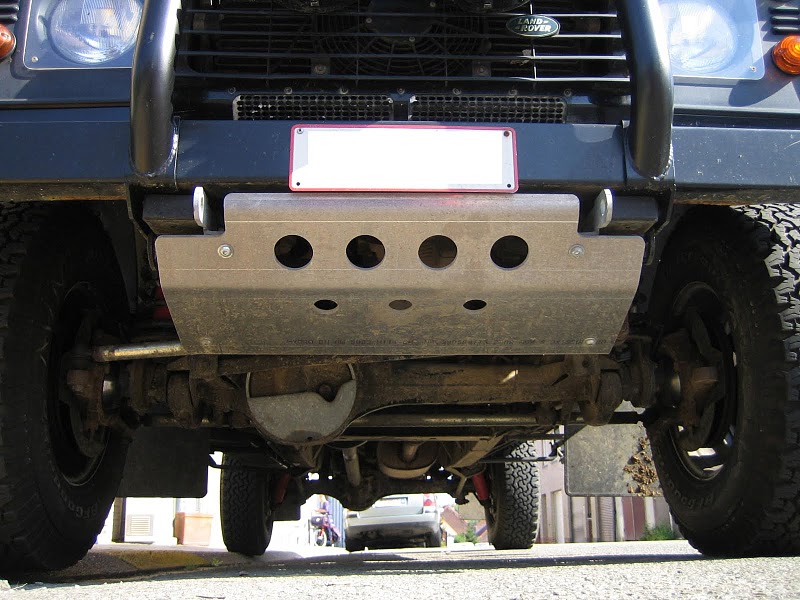 Ski : protection généralement faite à partir d'une plaque d'aluminium de 8 mm d'épaisseur et boulonnée au châssis afin de protéger le bas moteur et la barre de direction. La forme permet au véhicule de glisser sur l'obstacle qui touche la protection (dans une certaine limite bien sûr). Le désavantage est que si le véhicule veut sortir d'un mauvais pas en marche arrière, le ski peut faire socle de charrue et accumuler terre ou sable entre la protection et le moteur.