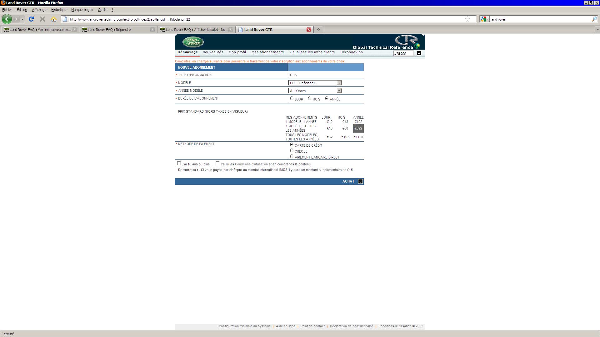 En naviguant sur le site http://www.landroverfaq.com vous reconnaissez avoir lu ses Conditions d’Utilisation, vous déclarez les comprendre et vous acceptez d’y être lié de manière inconditionnelle. Si tel n'est pas le cas, merci de quitter immédiatement ce site.