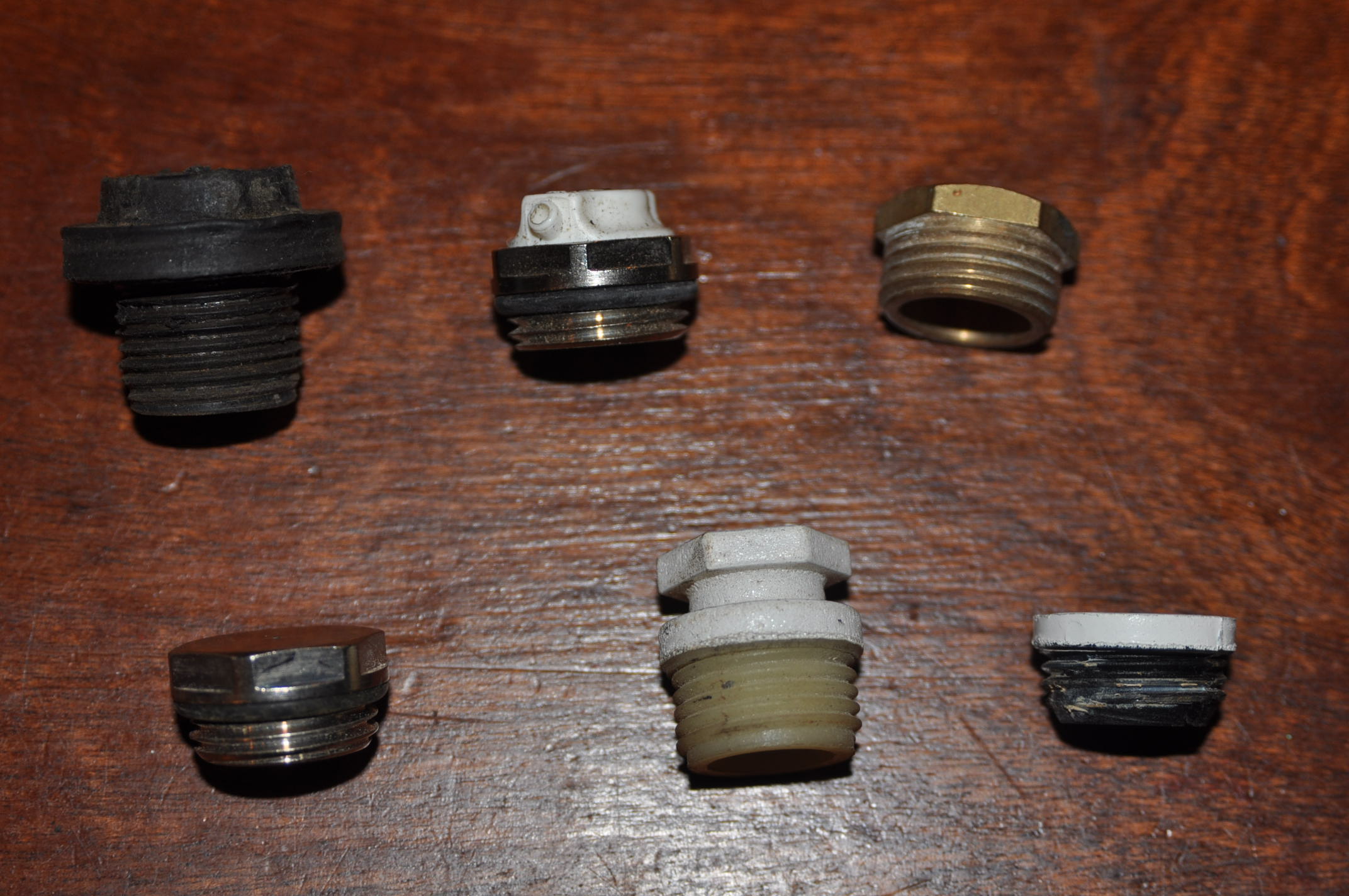 Le premier en haut à gauche le bouchon d'origine; le deuxième à sa droite le top, muni d'un petit carré de vidange et d'un joint torique; le troisième un bouchon classique en laiton; le quatrième chromé avec une porté un peu plus large prévue pour un joint torique; le cinquième et sixième ce sont des obturateurs fournit sur les radiateur neuf Acova, n'importe quel plombier en à des kilos dans son camion à gratuits voir pas chère... Sous un autre angle, coté tête... On peut aussi utiliser un petit robinet quart de tour. A+