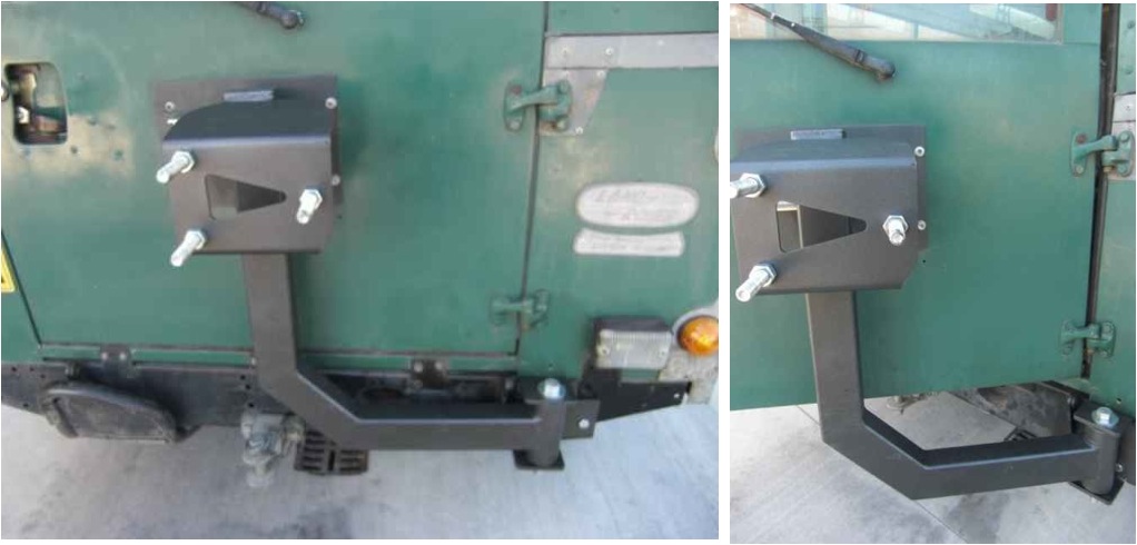 - Sur un porte roue déporté (avec appui sur le montant et non sur la porte). Ca m'avait paru dans un premier temps la solution idéale. Sauf que pour ouvrir la porte il faut d'abord déverrouiller et ouvrir le porte-roue. Ce qui signifie que les passagers arrière ne peuvent plus ouvrir la porte de l'intérieur. Ce qui côté sécurité m'a l'air vraiment moyen (d’ailleurs est-ce réglementaire comme montage ?).