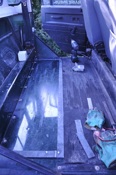 Entre les 2 sièges un cubby-box home-made boulonné sur la structure qui pourra donc céder sa place à un petit frigo si la nécessité s'en fait sentir.