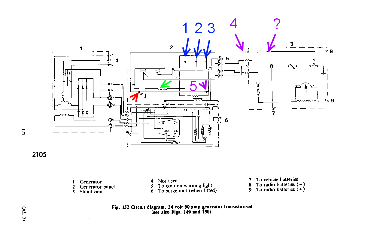 A l'arret ce n'est pas grave, mais moteur tournant, il y a un petit 28V qui est produit par le régulateur via la génératrice qui normalement doit provoquer l'extinction de ton voyant quand tout va bien. Car il est situé entre deux 28V a ses bornes donc pas de différence de potentiel et doit s'éteindre quand tout va bien, maintenant, si il y a une sur production ou une sous production il s'allume car cela génère une différence de potentiel par rapport au 24V de la batterie.Donc cette sortie est prévue pour débiter très peu de courant, en la reliant a la masse directement tu lui fait débiter un maximum car il n'y a plus de limitation et une différence de potentiel maximum alors que seulement 3 ou 4 volts suffisent pour commencer a allumer ton voyant. Tu as mis une ampoule 24V-3W; il faudrait retrouver la vrais valeur de ton voyant de charge, je vais chercher mais je ne sais pas si j'ai ça dans mes documents?