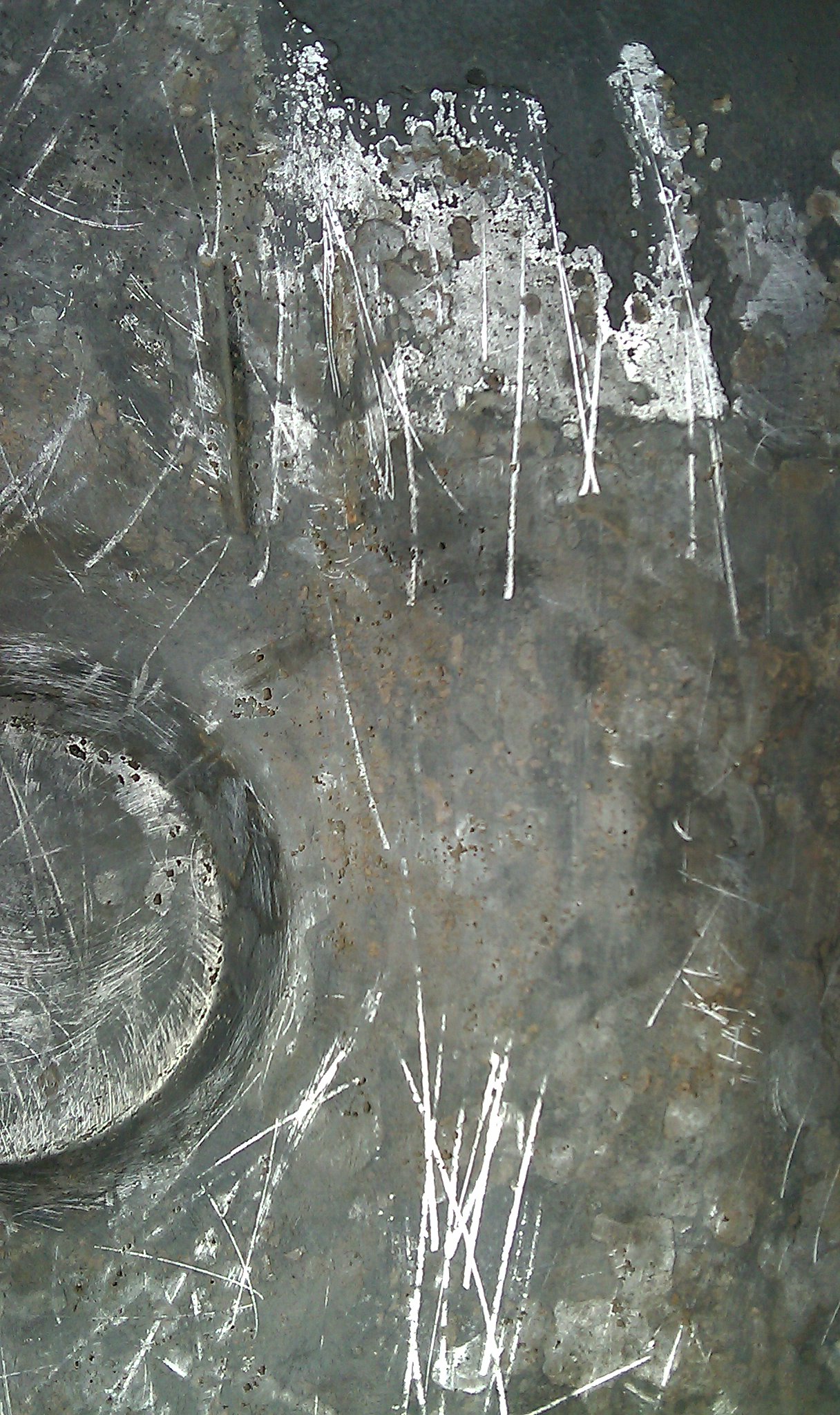 Bref, en nettoyant la partie inférieure qui est normalement contre le blindage d'origine, je me suis rendu compte qu'il y avait des dizaines de trou (perforation très localisé par la rouille), bref mon réservoir ressemble à une passoire et c'est la merdouille qui faisait l'étanchéité.... j'aurai pas du y toucher :sm1: