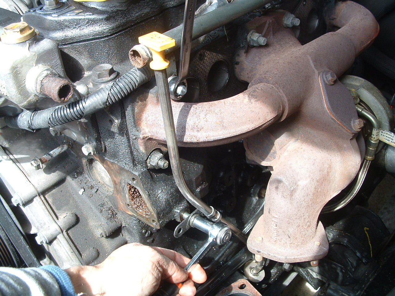Je me suis attaqué au remplacement des pastilles de désablage du bloc de mon disco 300TDI , et j'en profite pour "faire" le joint pistolet entre support de pompe et bloc.