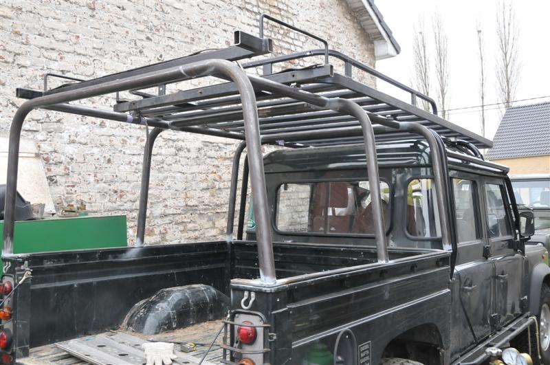 Je te mets quelques photos de la mienne, qui est une galerie artisanale transformé en plateau. Car il s'avère qu'a l'usage les cotés ne servent à rien, sinon à augmenter la hauteur, et de toute façon à chaque fois que je mets quelques choses sur la galerie je l'attache. Les tentes de toit ne passent pas ou sont trop juste avec les cotés c'est gênant pour les refermer ou y accéder. Quel sont les accessoires que tu comptes monter dessus?