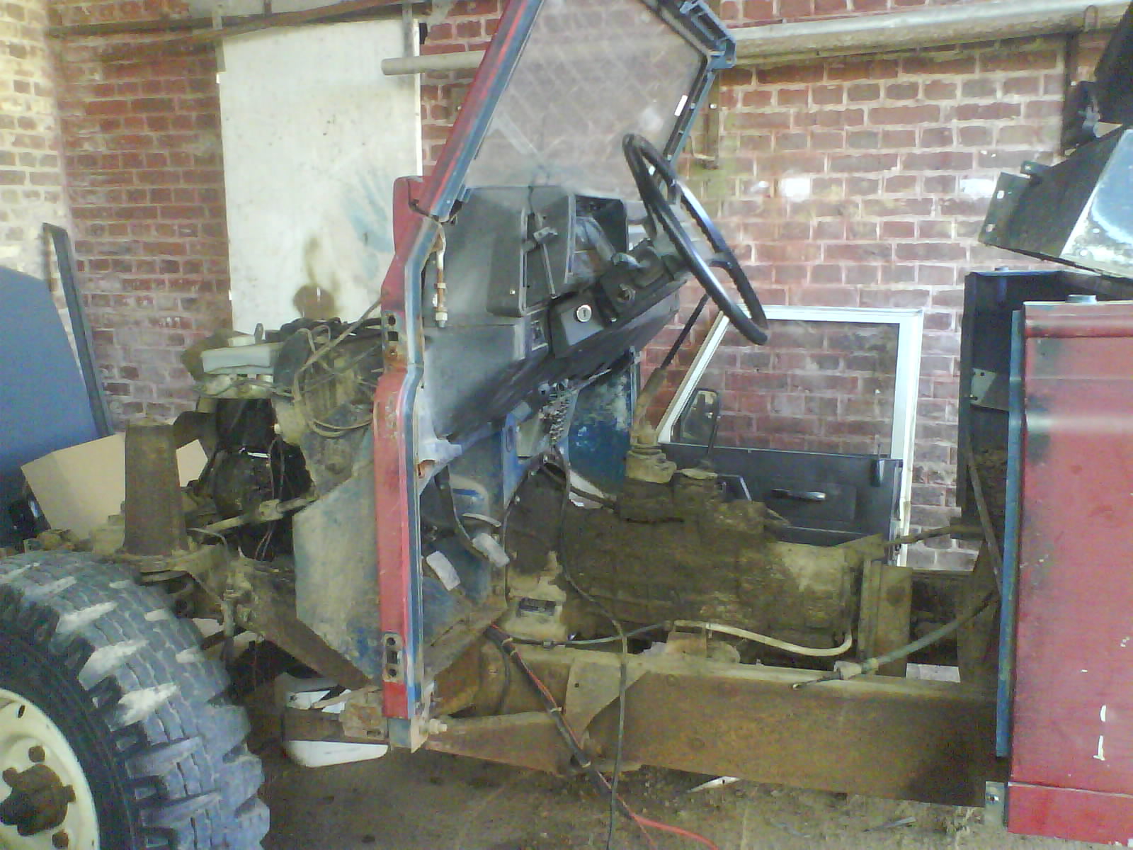 Le pare brise est a changé, j’avait pas vu et en démontant, merde, il est légé : c’est du plexi ! pour les charnière de baie de pare brise, je laisse comme ca. Pour les portes, pas de rouilles au bas, étonné ! seul peut être un peut d’habillage intérieur a revoir ainsi que. La porte arrière est a ressoudé pour consolidé car elle porte la roue de secours. Pour le toit, façonnage et masticage de quelque bosse fait par l’intérieur, mettre un troisième feux stop (obligatoire je crois ?) Les feux de piste vont virés pour mettre deux phares pour les marches arrière la nuit c’est mieux ! Pour la caisse, gros boulot ! façonnage et masticage de toute les bosses, refaire les pattes qui tiennent les ailes, faconné tout le fond au mieux pour faire propre de l’extérieur et y reposé dessus une plaque d’alu striée (si pas trop chère) ou du contreplaqué marine afin de plus défoncé tout quand on transporte des gros truc. Aussi fabriquer une grille amovible pour évité que le chien se retrouve sur les sièges, mettre des ceintures (la c’est des harnés), changé le TDB qui est plus trop propre (je pense a cause des punaises de road book), voir si mettre des sièges plus confortable ?, en trouvé de def ? refaire ceux la ?, voir sablé entre le réservoir et la tôle de protection car c’est pas beau, que mettre pour bouché si sa fuit ?