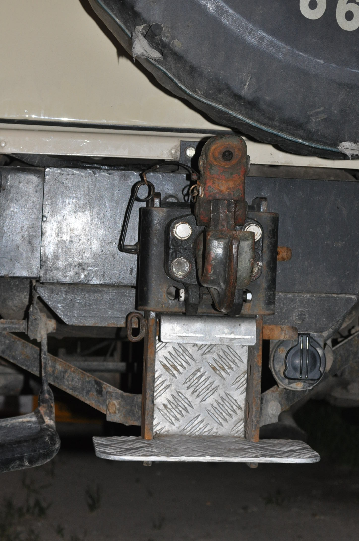 1) Version sortie avec les mômes, un petit marchepied supplémentaire. et un crochet universel au cas où... 2) Version Sankey. Il n'y a que deux centimètre de décalage de la NATO vers le bas par rapport ses fixations d'origines sur la travers. 3) Cela permet d'ouvrir le crochet... 4) Mais il y a la solution de fixer la NATO a la l'œil de la Sankey, puis le U sur le land. Pour le frein à main, il y a un truc à faire, je sais que j'ai vu ça il y a longtemps, mais impossible de m'en souvenir
