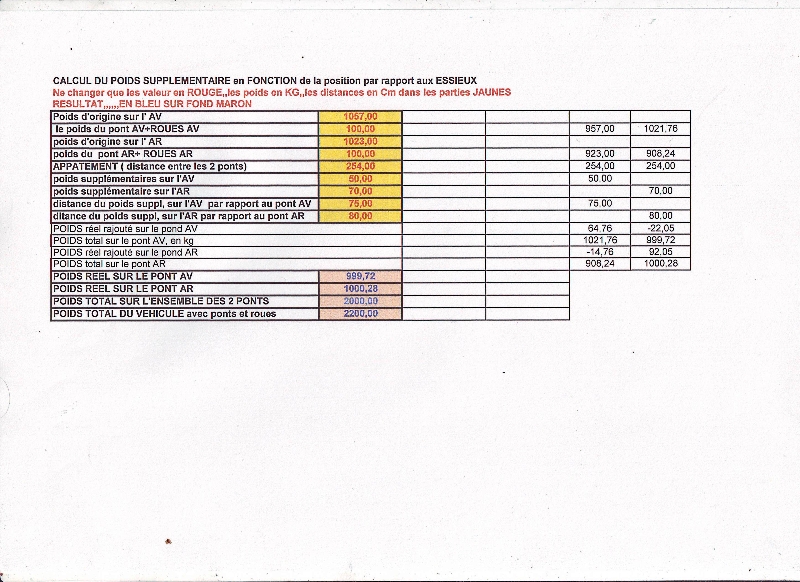 Après connaissant le poids des choses que tu rajoutes par rapport au CT, et leur emplacement, tu arriveras à estimer le poids sur chaque essieu.