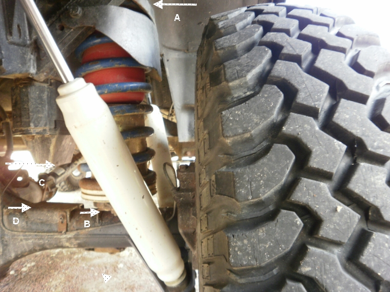 8- d'un Amortisseur de Direction rajouté à l'avant du pont av à la façon des "DEF", en oeil/tige.