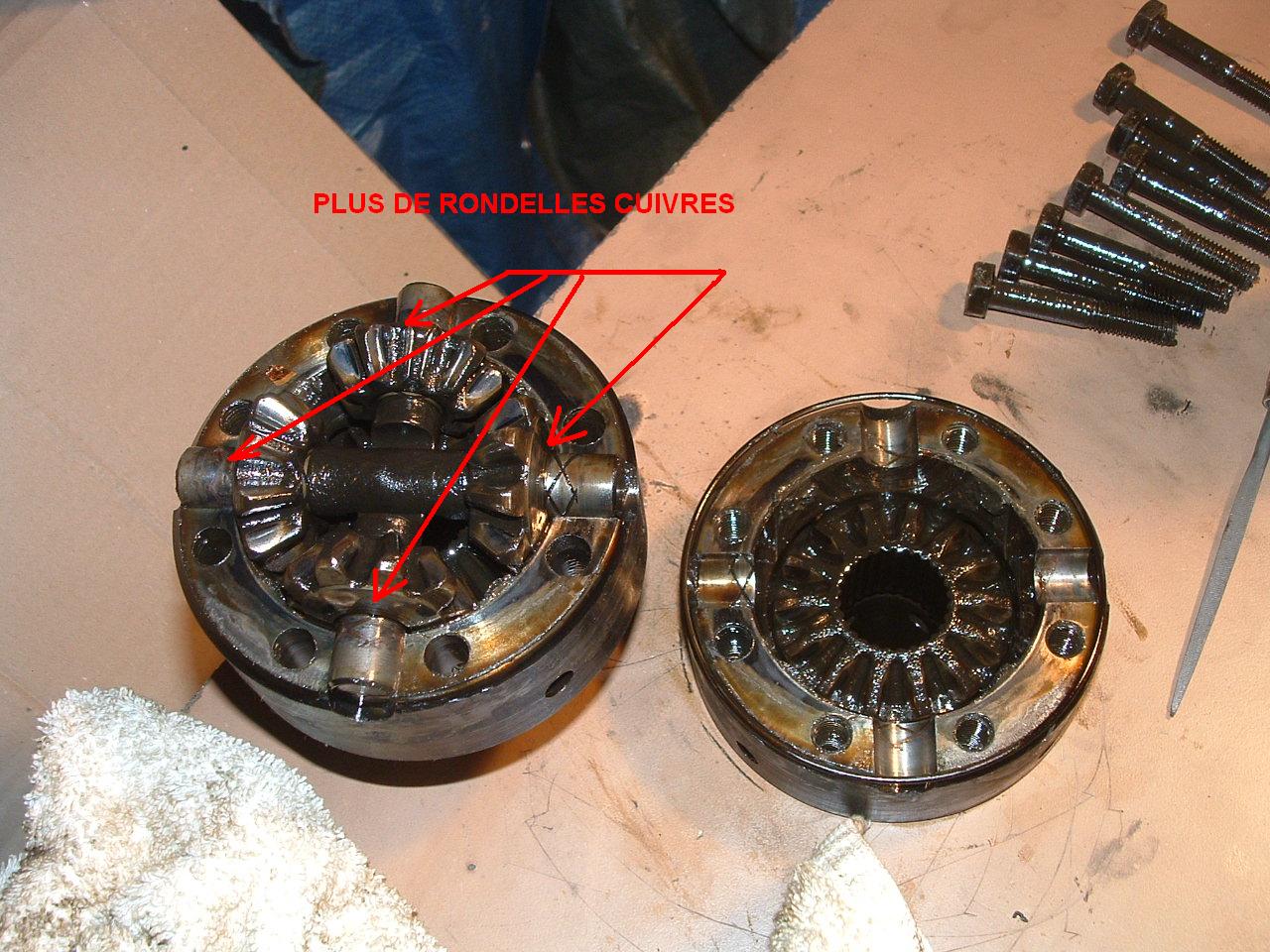 J'avais quelques soucis sur la BT:rondelles cuivre bouffées au cul des satellites du diff central: et fuite d'huile entre les 2 boites: