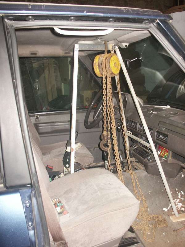 Ca dépend comment tu est équipé... Sur les disco la 'traverse' de la caisse en haut du radiateur ne se dépose plus comme sur les anciens range (avant 86) ou les def, du coup pour sortir l'ensemble moteur + boites il va falloir incliner l'ensemble très en arrière, et lever après très haut!