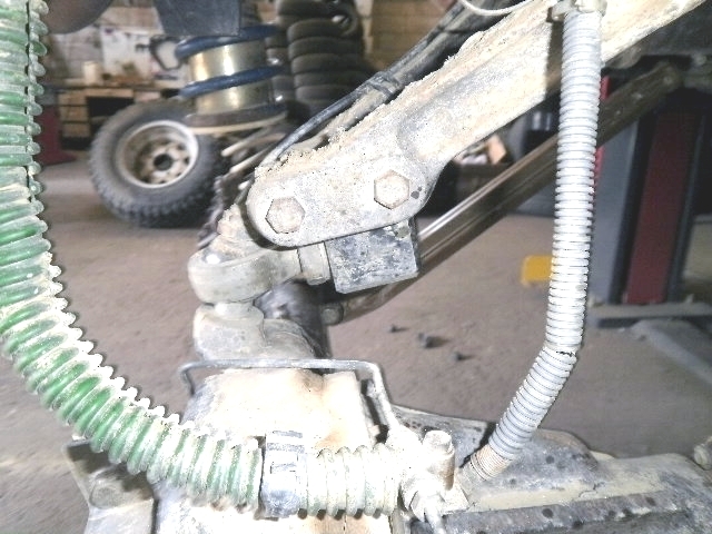 Exemple de la Différence angulaire entre jambes de forces de lr et celle dite de 3° de rattrapage d’angle de chasse compensant en même temps une rehausse moyenne de 5cm coté châssis....donc avec un angle et un espace plus importants avec ceux dit 6° de....... Vu de l’oreille support , coté châssis....avec sa jambe de force de 6° de..... je n'ai pas de photos prise sans les jambes de force....