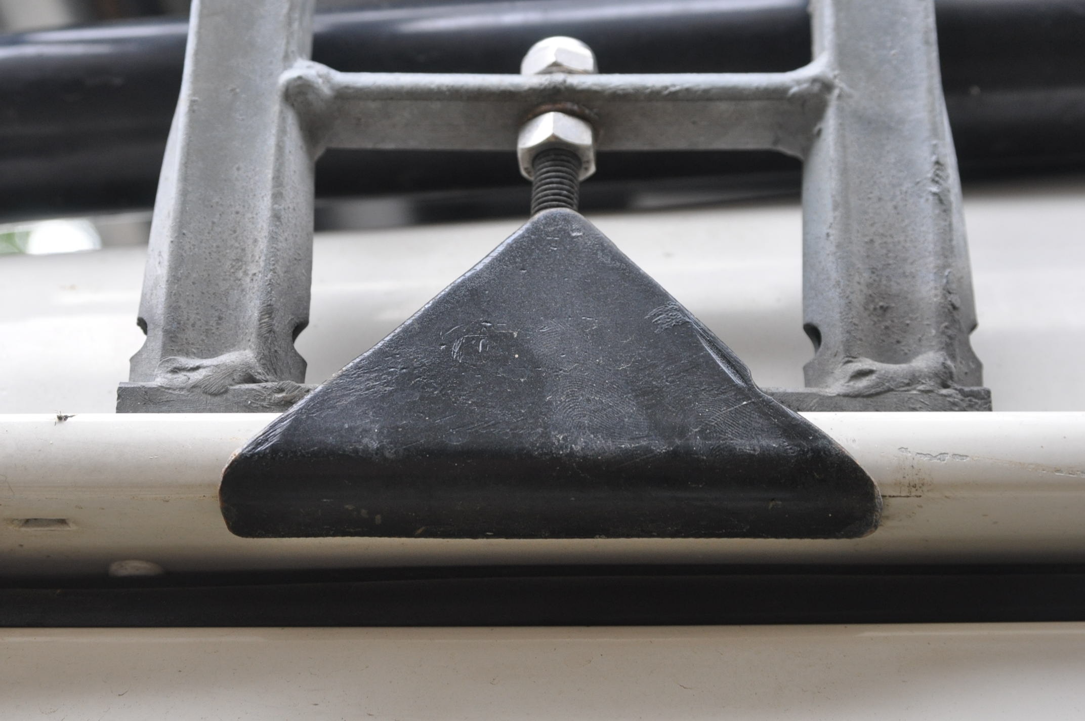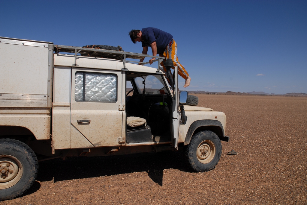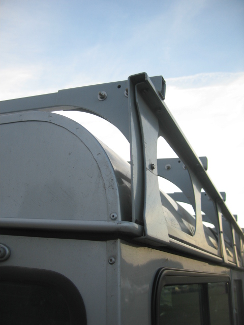 . La photo illustre l'inconvénient qu'aurait un rebord si tu a une tente de toit a accès latérale ce concepts est déjà embêtant car il t'oblige a te trimbaler une échelle qui est toujours située devant la porte que tu souhaite ouvrir, t'oblige a faire l'acrobate pour te déshabiller, et les pompes tu les mets où? Les grosses pompes, pas les sandalettes que tu coince entre la galerie et le toit. Cette galerie est basique, légère, et a passé l'épreuve de 1000km de piste avec 4 points d'ancrage par crapeau seulement.