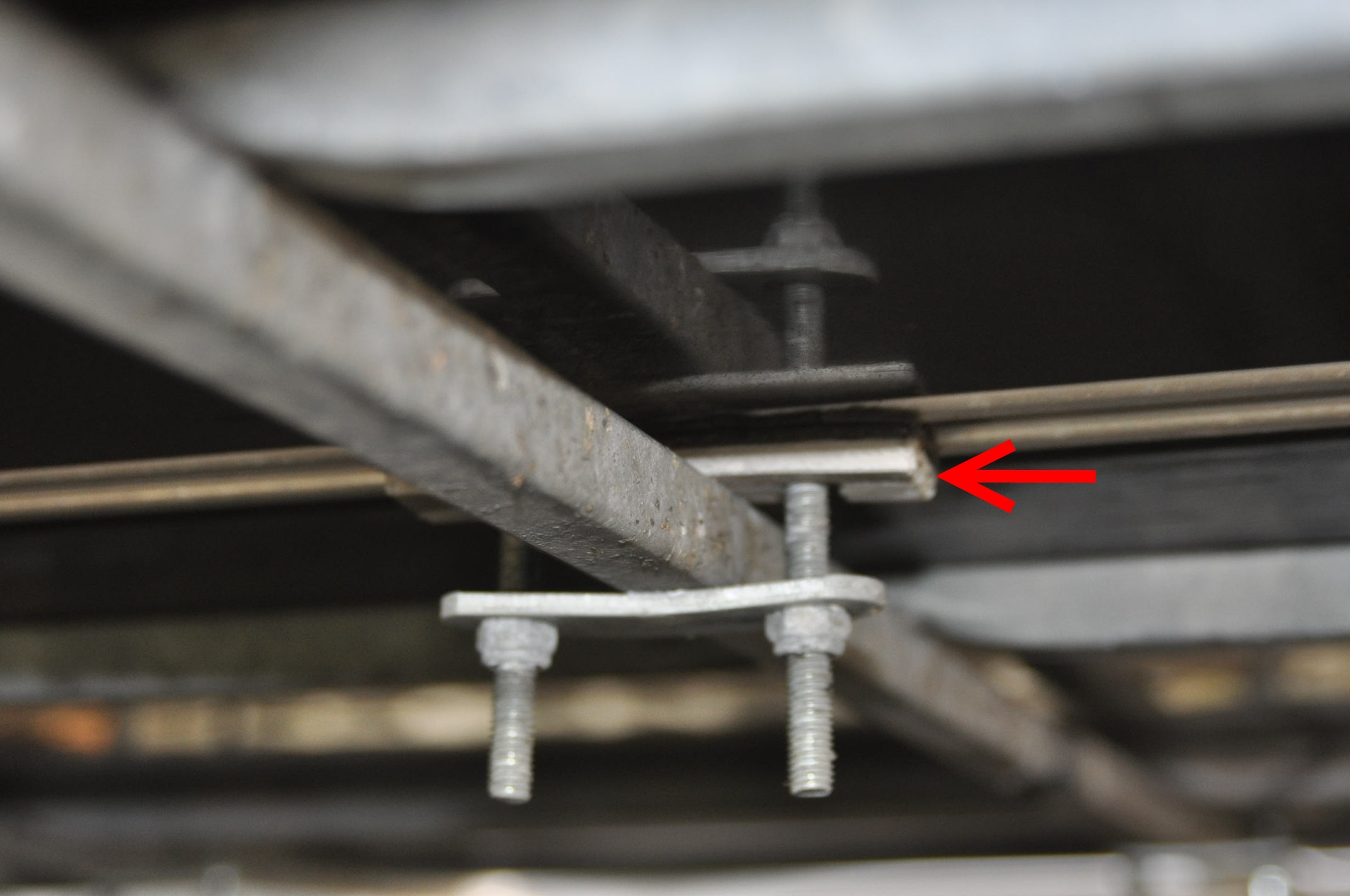 Les fixations un profilé en L fixé avec 4 écrous soudés sur les pieds en rouge sur le plan et le pied de galerie qui prend toute la longueur de la gouttière.