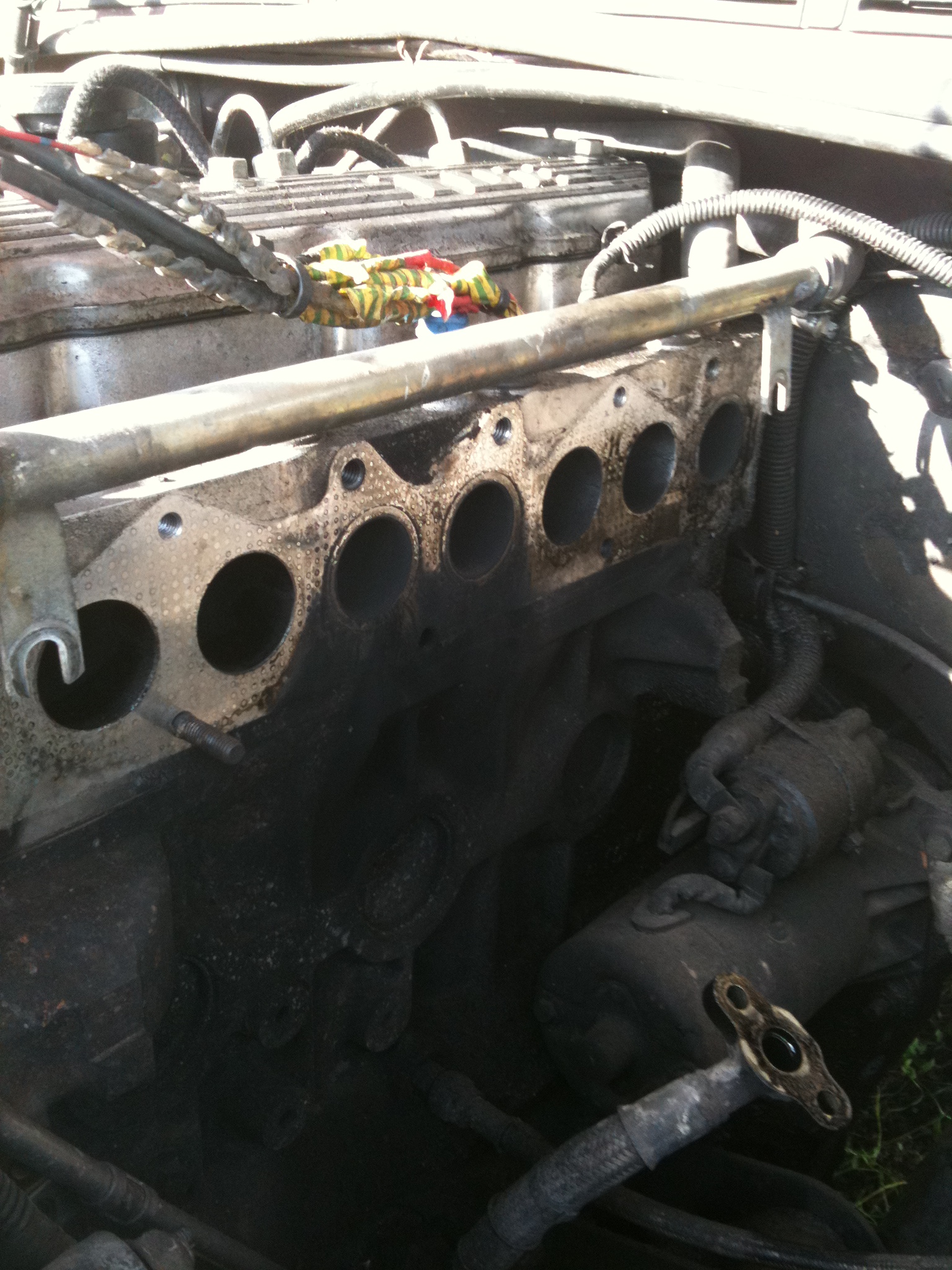 Et des fuites de gaz d'échappement au niveau du milieu (joint écrabouillé par le goujon) et côté tablier (qui ne devait pas aider à limiter le volume sonore).