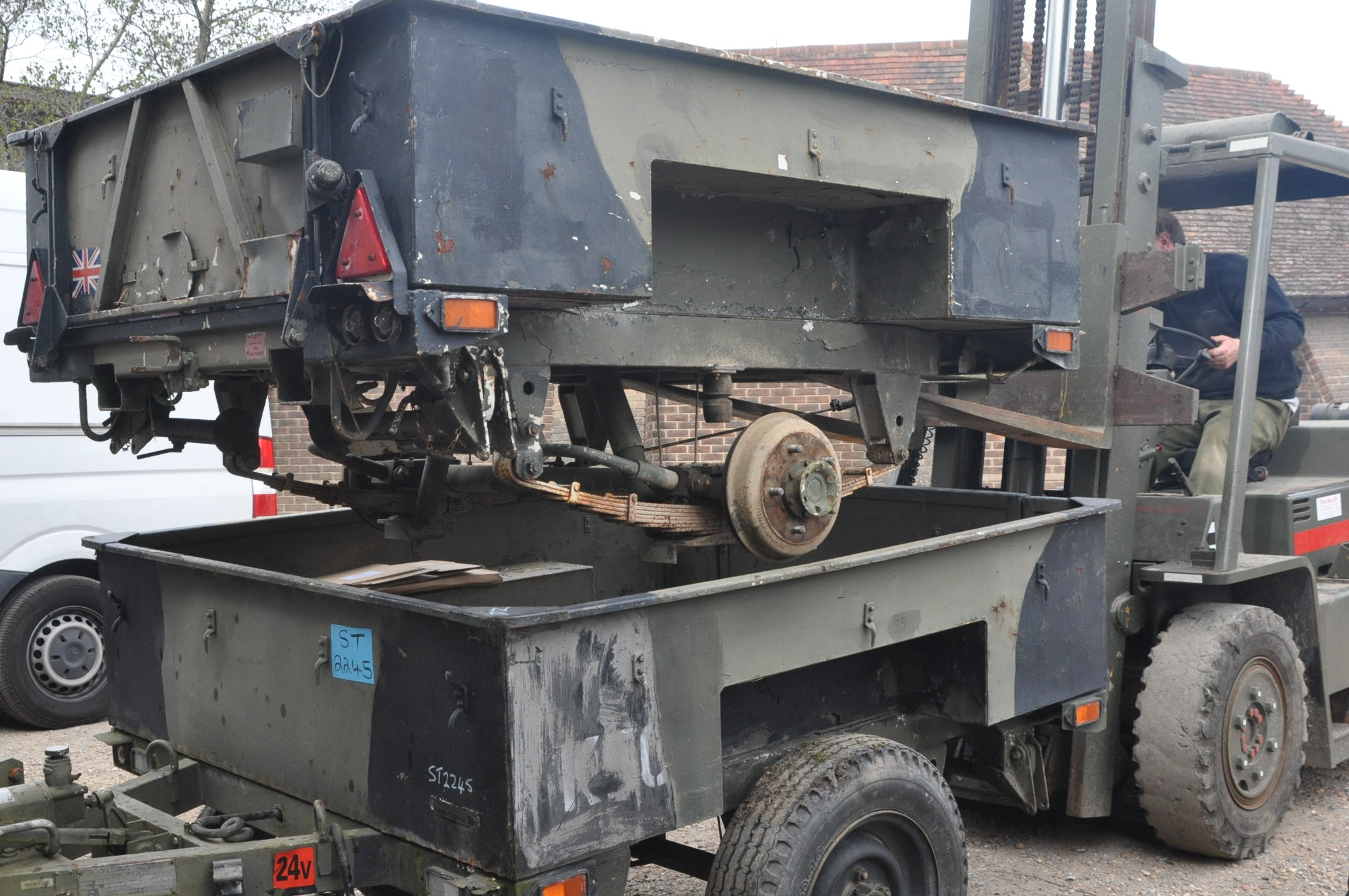 Sur ton 2ème post, tu dis que c'est une remorque de l'armée hollandaise et qu'elle est non freinée avec une béquille sur la flèche. Pour un certain nombre d'anglais, les terme "Sankey" est devenu un terme générique comme Frigidaire et désigne une remorque militaire. Il pourrait par contre s'agir d'une version post-WWII de la MB-T (fabriquée par Wyllis) ou de la T3 (fabriquée par Bantam). Si c'est cela, la méthode pour traverser l'eau n'est pas la même et il faut faire attention à ce que le nable (ou bouchon situé à fond de cale pour les marins) soit bien fermé.