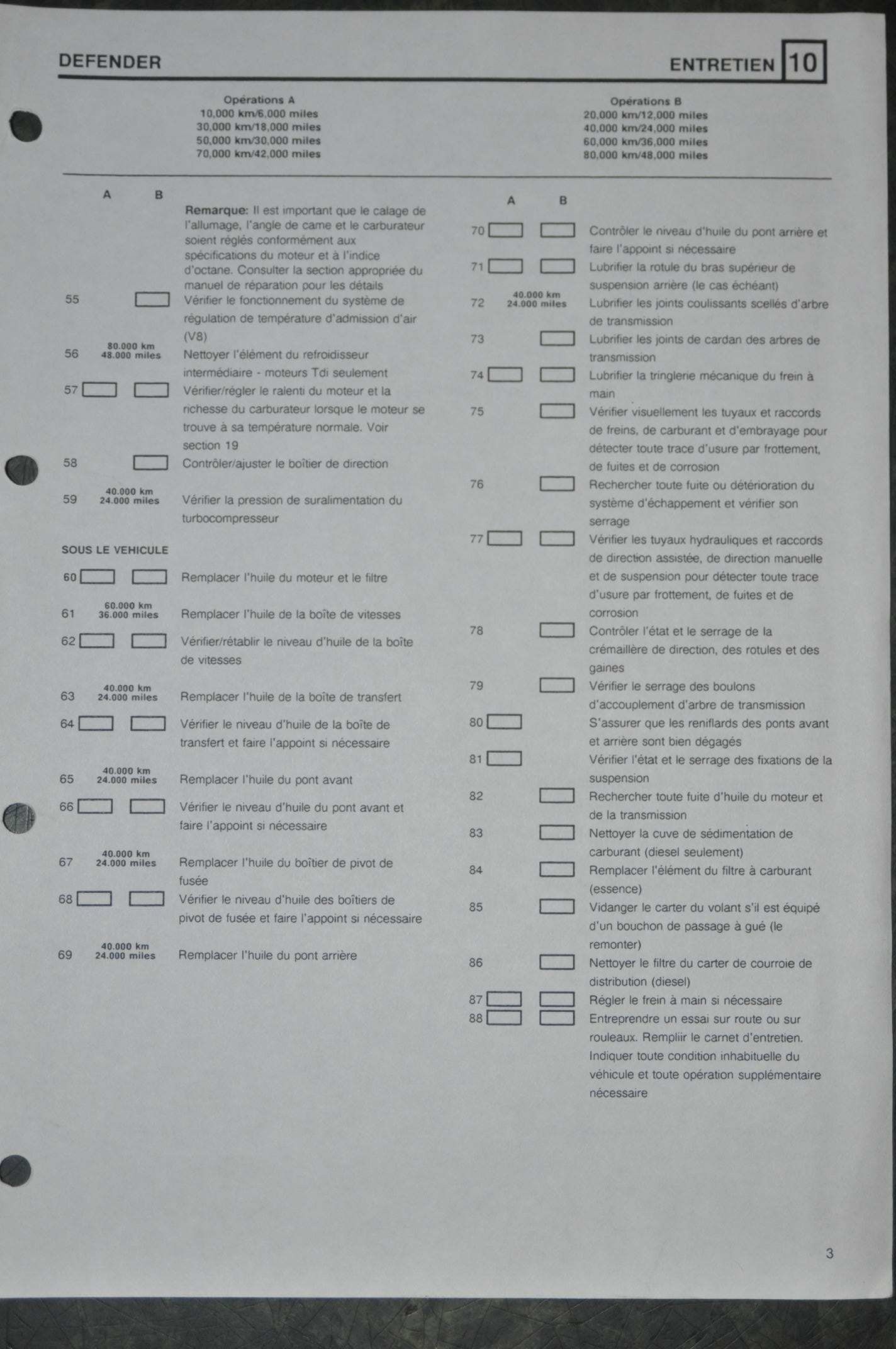 Graissage des croisillons et coulissants d'arbres de transmission 5000km environ et certaines rotules si graissable, mais il n'y a pas vraiment de règle, c'est selon l'usage et le visuel.