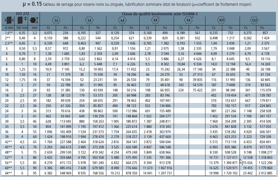 Avec des surfaces propres et un peu d'huile, ont peut prendre µ1=0.1 et µ2=0.12