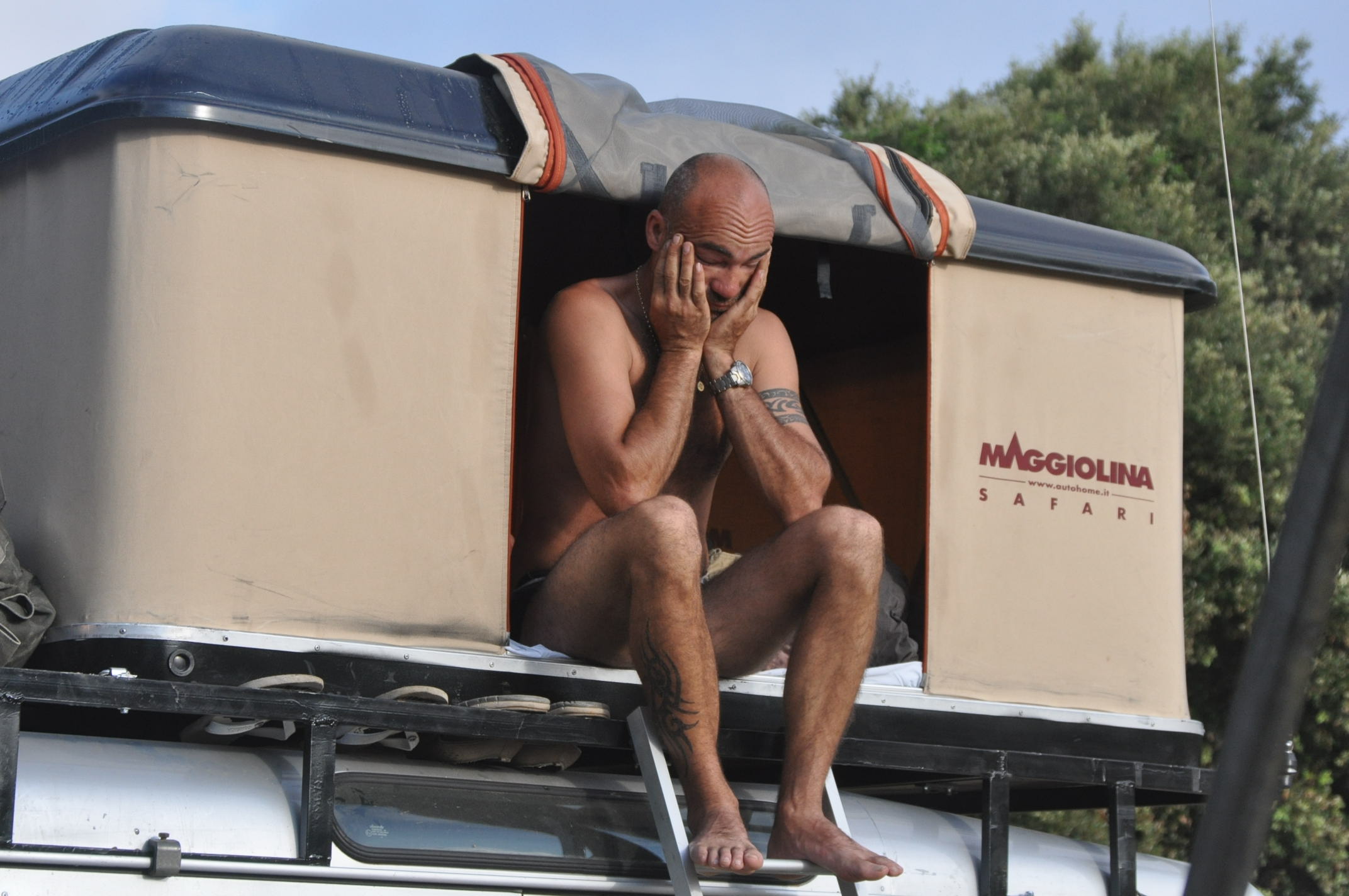 . La photo illustre l'inconvénient qu'aurait un rebord si tu a une tente de toit a accès latérale ce concepts est déjà embêtant car il t'oblige a te trimbaler une échelle qui est toujours située devant la porte que tu souhaite ouvrir, t'oblige a faire l'acrobate pour te déshabiller, et les pompes tu les mets où? Les grosses pompes, pas les sandalettes que tu coince entre la galerie et le toit. Cette galerie est basique, légère, et a passé l'épreuve de 1000km de piste avec 4 points d'ancrage par crapeau seulement.