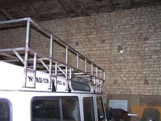 . La photo illustre l'inconvénient qu'aurait un rebord si tu a une tente de toit a accès latérale ce concepts est déjà embêtant car il t'oblige a te trimbaler une échelle qui est toujours située devant la porte que tu souhaite ouvrir, t'oblige a faire l'acrobate pour te déshabiller, et les pompes tu les mets où? Les grosses pompes, pas les sandalettes que tu coince entre la galerie et le toit. Cette galerie est basique, légère, et a passé l'épreuve de 1000km de piste avec 4 points d'ancrage par crapeau seulement.