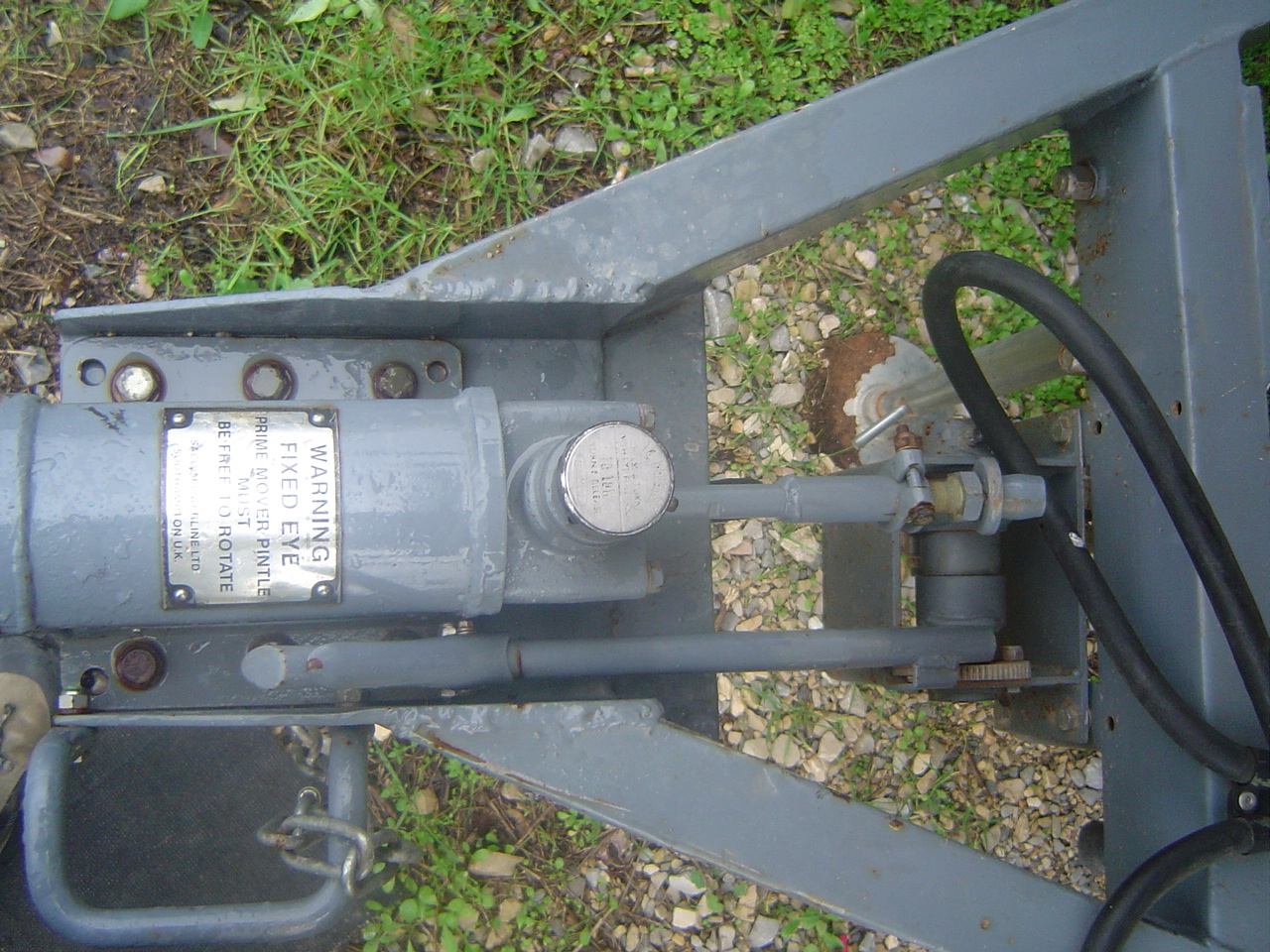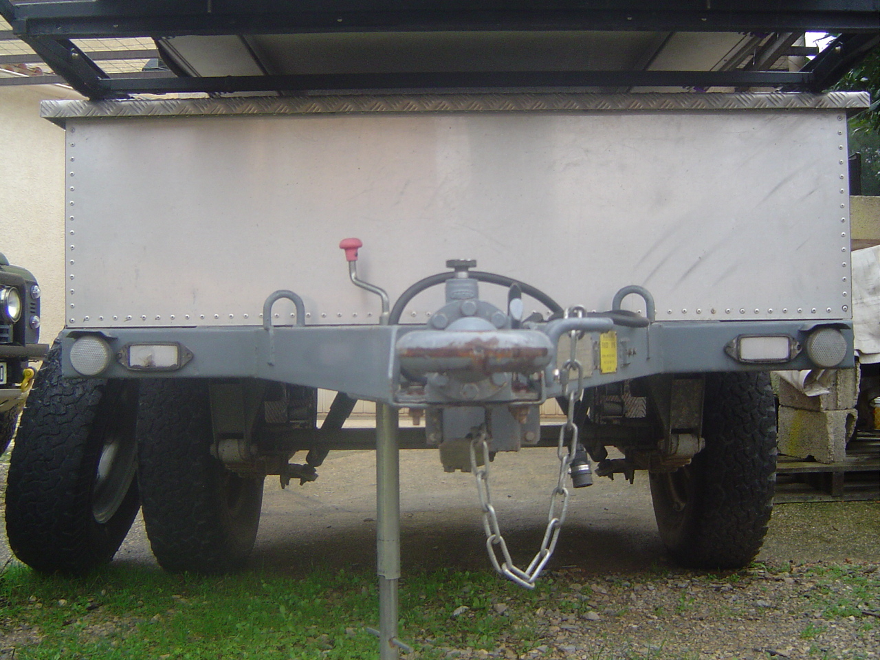 Pour ce qui est de la modif, j'ai descendu l'anneau et le frein de l'épaisseur du chassis.Au passage, j'ai rallongé un peu le timon pour avoir plus d'espace quand on ouvre la porte arrière du Def.Le poussoir du frein à inertie a été rallongé avec une grosse vis en pas anglais, mais comme cela n'était pas suffisant, j'ai rajouté la partie fileté d'une barre de direction de Def avec la vis d'origine de la sankey.