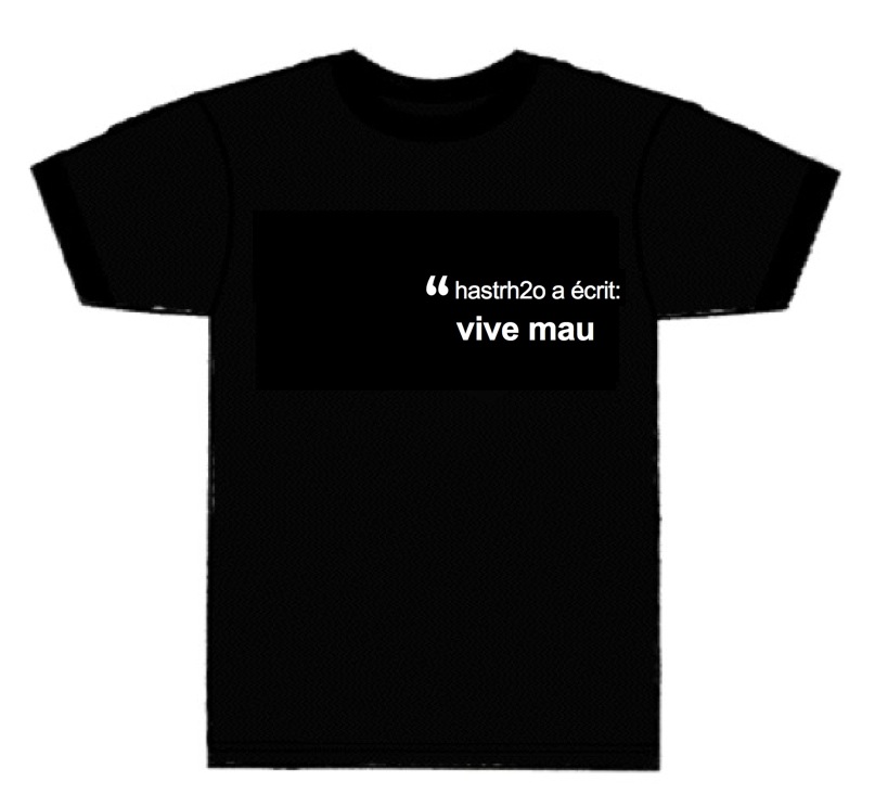 Voir, chacun ayant son propre T-shirt avec son pseudo : "X a écrit"