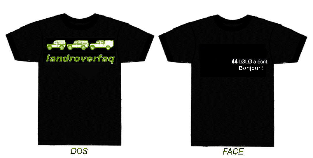 Mais si la demande provient des membres du forum, la chose est différente. Le projet qui commence à poindre est parfaitement faisable techniquement, et on peut l'envisager sur tous les supports imaginables ( tshirts à manches longues ou courtes, sweats, polaires, softshells, combinaisons d'atelier, parkas, etc...), c'est la nature du graphisme et sa récurrence qui dicteront quelle est la technique à employer pour réaliser le marquage et donc quel sera le coût de revient. Gardez à l'esprit que ce qui est récurrent (genre landroverfaq.com sur la poitrine) est facilement reproductible et industrialisable, et sera donc moins coûteux à fabriquer qu'un motif personnalisé. Un lettrage simple genre < "The Pater à écrit : > reste très simple à faire, il est donc tout à fait envisageable économiquement même fabriqué à l'unité, mais si vous partez dans des délires de dessins ou motifs personnalisés ça va taper sérieusement car il faudra réaliser des maquettes coûteuses pour chaque pièce.