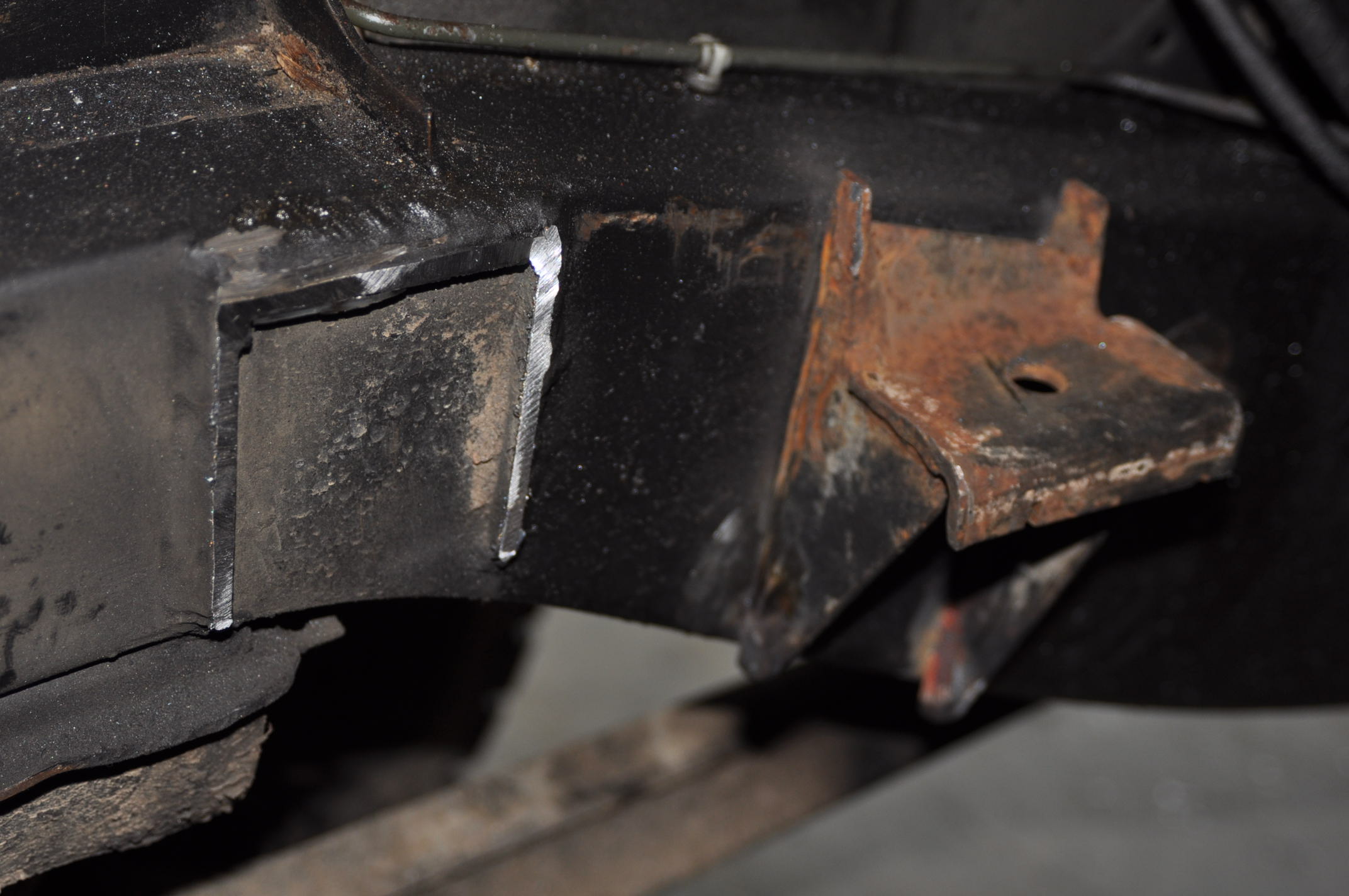 35) Le support n'est pas encore pointé, un peu plus haut, un peu plus bas, les coulissaux n'ont pas bougés, c'est bon... 36) Tu pointe!!! 37) A l'autre: 37) Une fois que tu as pointé les deux supports, présente la descente d'échappement et l'échappement, il faut souder une patte de maintien d'un silenbloc, tu repère l'endroit par rapport au crochet qui est sur la ligne d'échappement du 300. Tu la pointe aussi, vas voir: Adaptation moteur + boite Disco 200TDI dans un 110SW 2.5 D sur la photo 8 ) elle est située entre la boite de transfert et le longeron.
