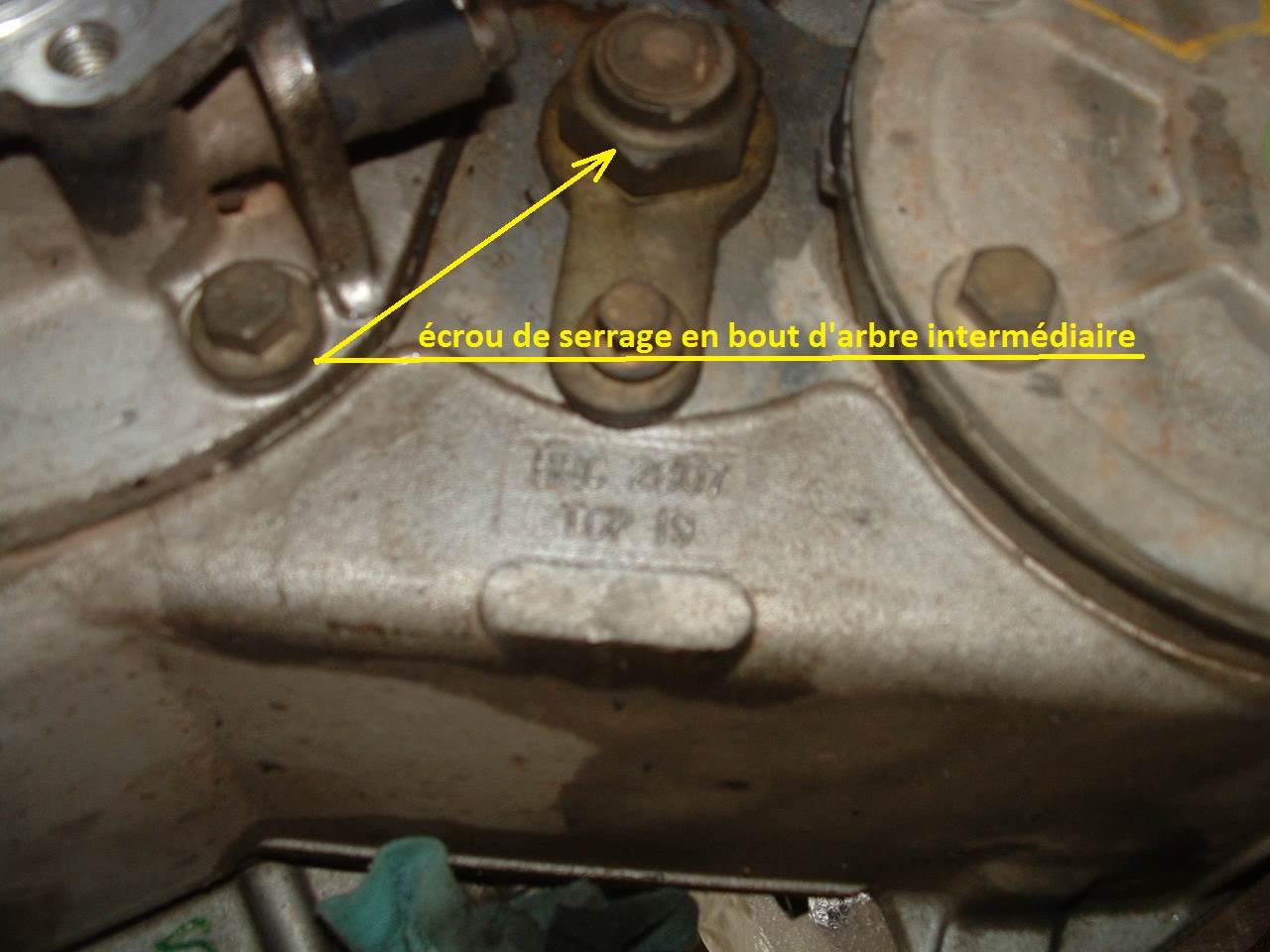 La vérification des roulements du train intermédiaire ne doit pas être aisée ou probante sans démontage.Tu peux toujours dans un premier temps vidanger la BT et déposer le couvercle rectangulaire pour "secouer" le train intermédiaire mais à mon avis à moins d'un jeu trés important, tu ne sentiras pas grand chose car les pignons sont pris en sandwich entre les deux faces internes du carter de BT et serrés par un gros écrou qui se visse en bout d'arbre n'autorisant quasi aucun jeu...doume a écrit : pour ce qui est du contrôle des roulements de bt, est ce facile après avoir vidangé et ouvert la trappe(au cas ou la bt est vraiment malade , est ce facile à réparer, ou faut il faire un échange standard à quel prix......)