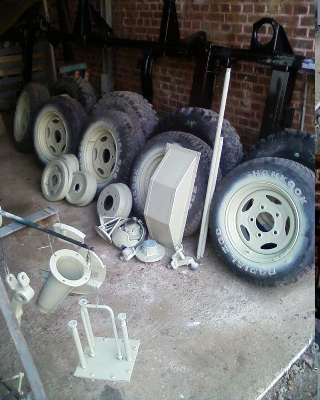 J'ai sablé les wolf, les parties du tablier rouillées, les supports de caisse, la caisse, bref un peut de tout ce qui traine et qui est rouillé ou oxider (alu) et ensuite, deux couche d'apret,