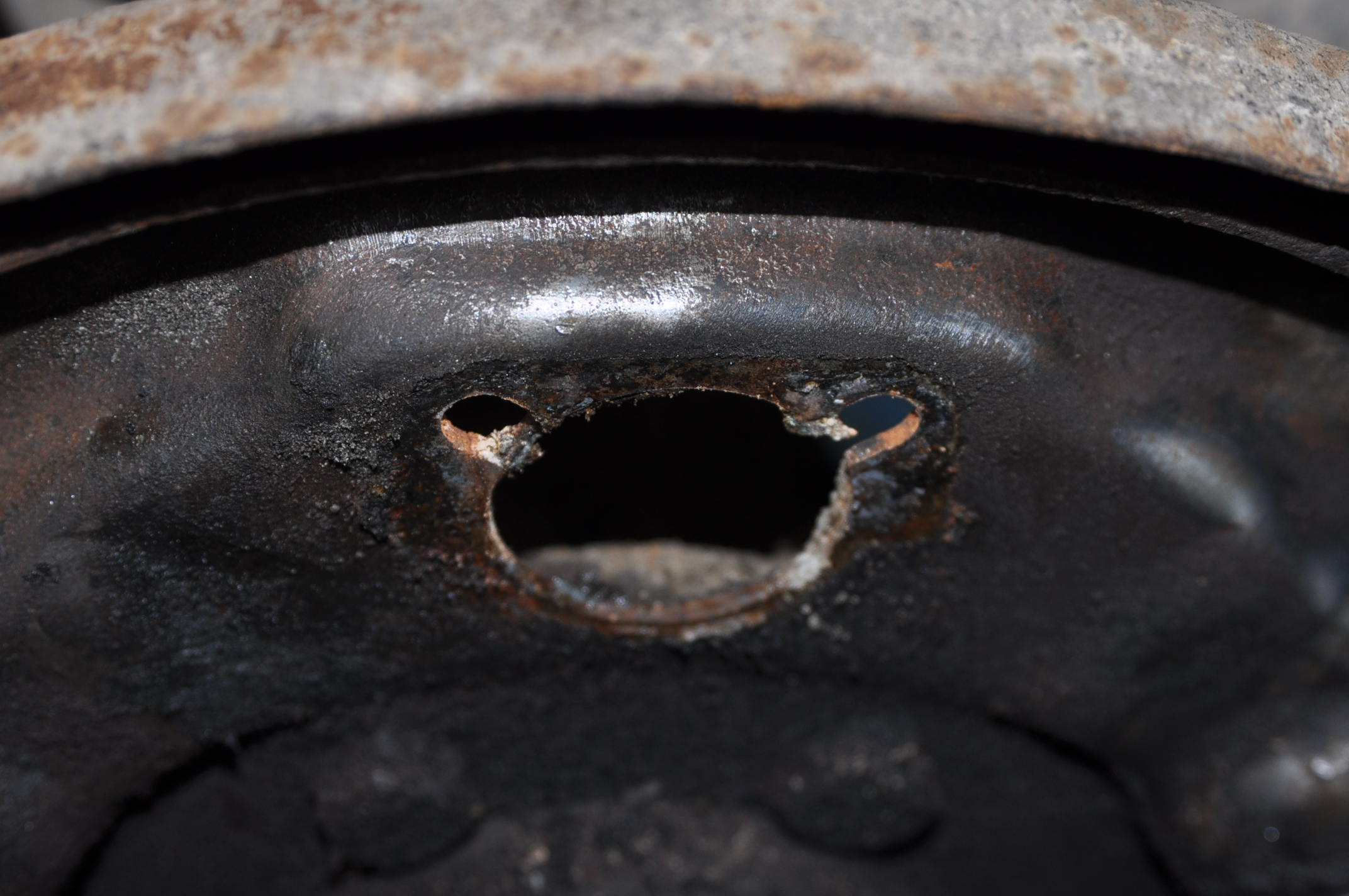 A partir de cette age, il n'y a plus de normalité... Le petit trou fileté :mrgreen: sur 3 ou 4 filets est non seulement rouillé et très détérioré, la petite pression exercée par la vis est incapable de vaincre la rouille qui a soudé le tambour autour du moyeu et des goujons.