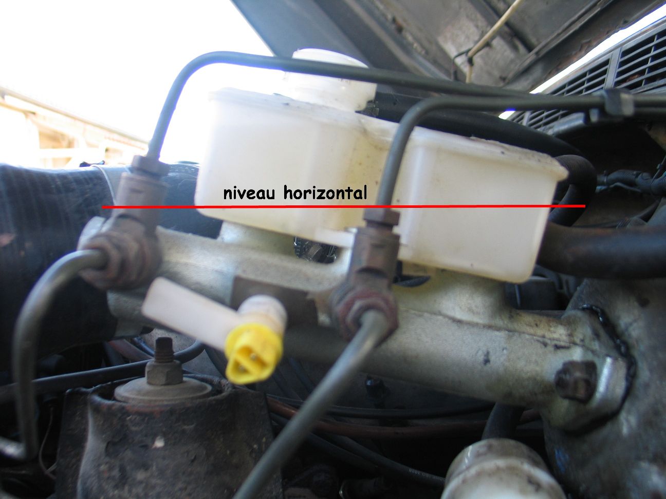 -par contre vu l'inclinaison du maitre cylindre : se pourrait-il que de l'air se fiche en haut ? -Ensuite , ça sert à quoi ce truc sur le maitre cylindre ? j'ai pas ça sur les miens ! ( je précise que je n'y est pas touché ) je n'ai pas fait l'intervention non plus sur ce dernier ( me suis juste assurer qu'il n'y avait pas de prise d'air au niveau de sa fixation )