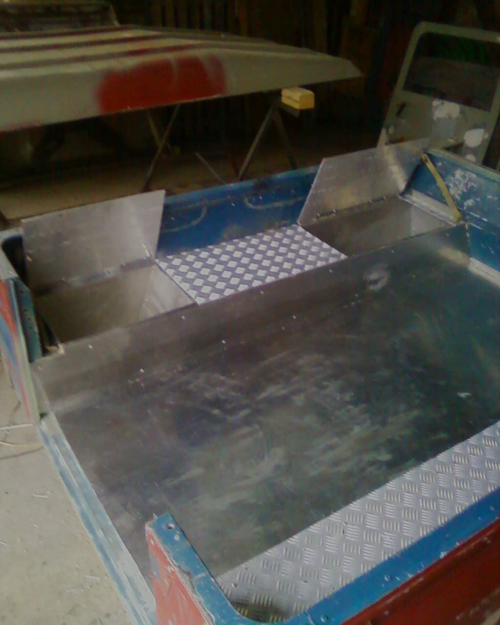 J'ai commencé la carrosserie, aprés avoir renforcé et incorporé mes caisses dans les ailes arrières! Je suis aussi en train de fabriquer des couvercles pour mes caisses et des dessus d'ailes.