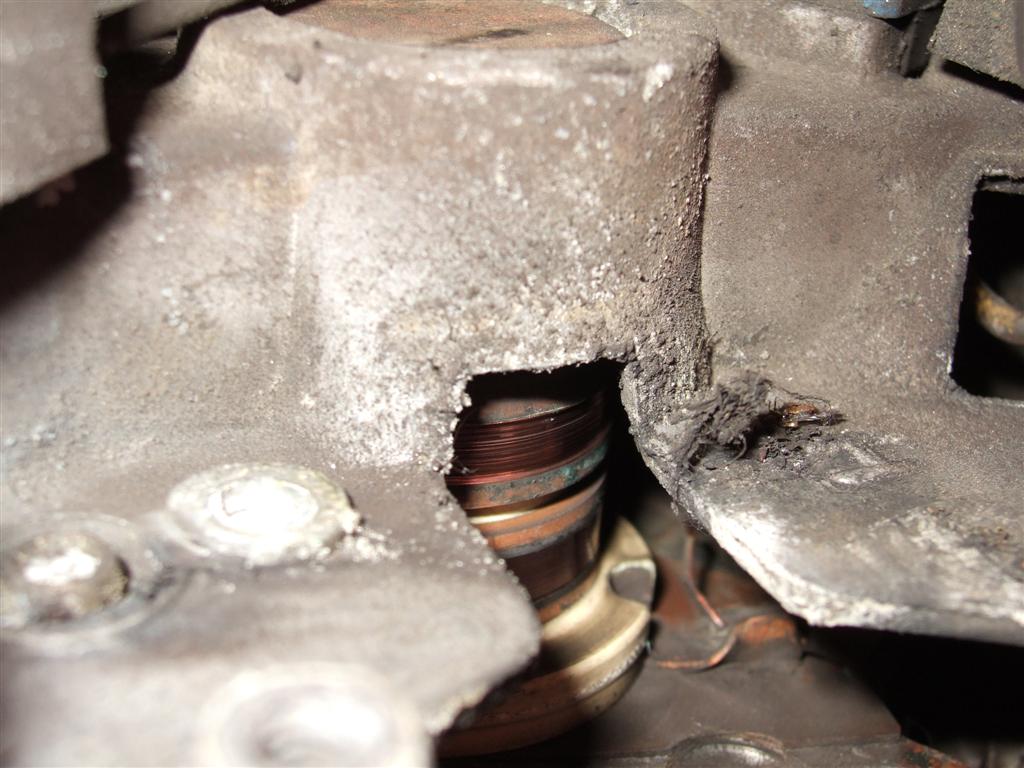 Comme toujours, bien que d'égales épaisseurs (1,98 mm) une bague s'use plus que l'autre. Celle du bas a littéralement disparu et le charbon portait sur l'isolant. Ca chargeait encore un peu, mais la vitesse d'amorçage était décalée de plus de 2 000 t/mn machine (de 1 000, on passait à 3 000). Donc la batterie finissait par se décharger.
