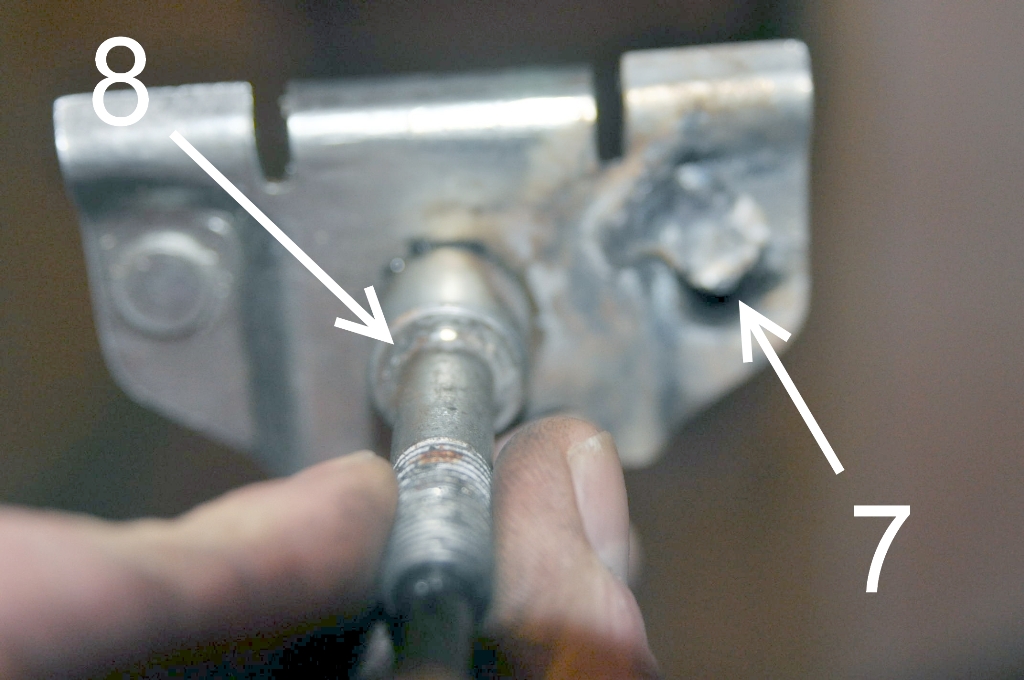 3) Mécanisme coté axe: repère 8: Petite bague qui bride l'axe dans le sens de l'enfoncement, pas sur tous les mécanismes. repère 7: Cause de démontage de ce petit mécanisme le filetage était HS