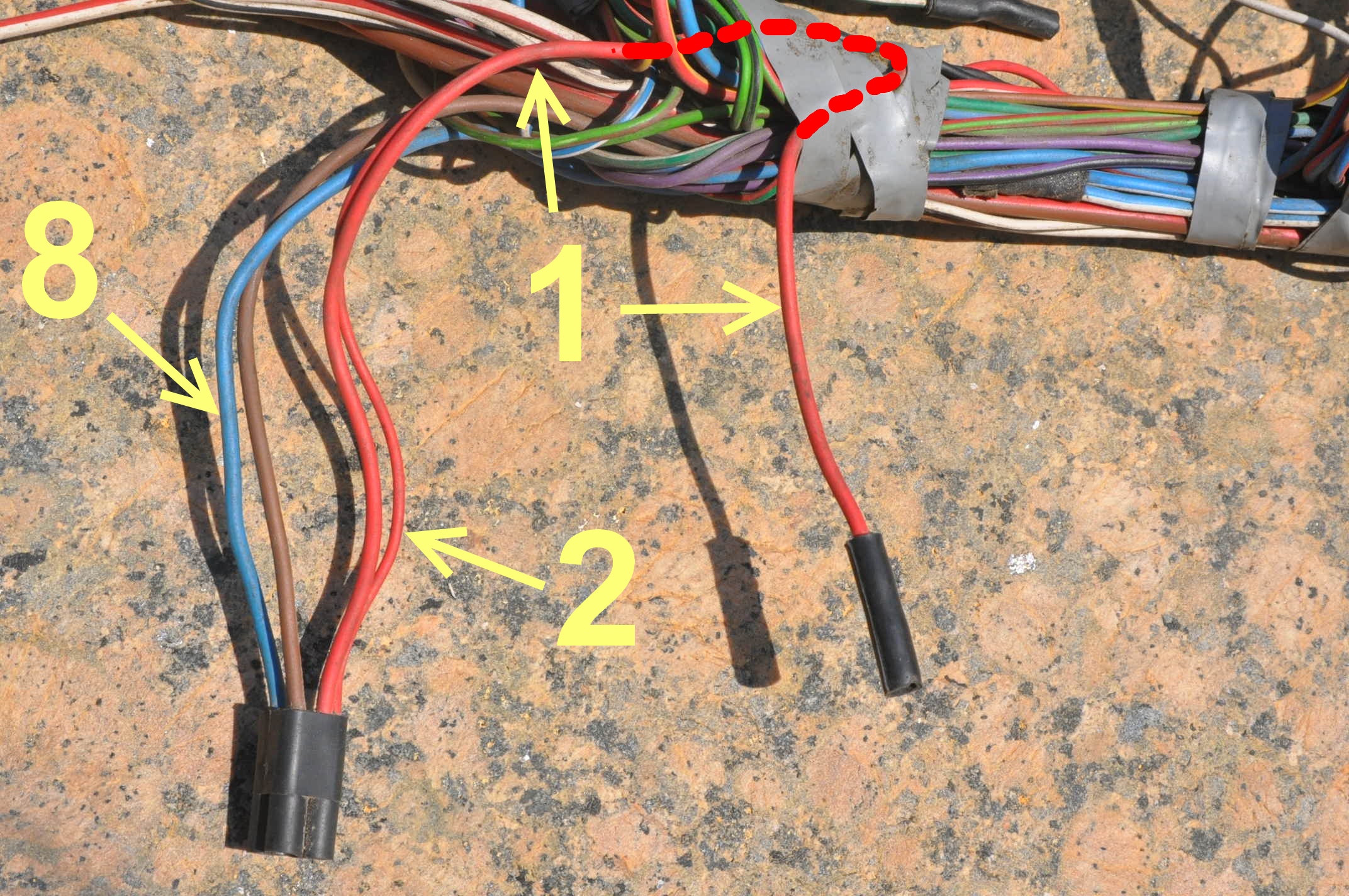 par le gros fil marron qui est un +12V permanent non protégé sur les TD et D.Le fil 2 allant au porte fusible vers les fusibles des veilleuses. Les veilleuses s'allument sans le contact.