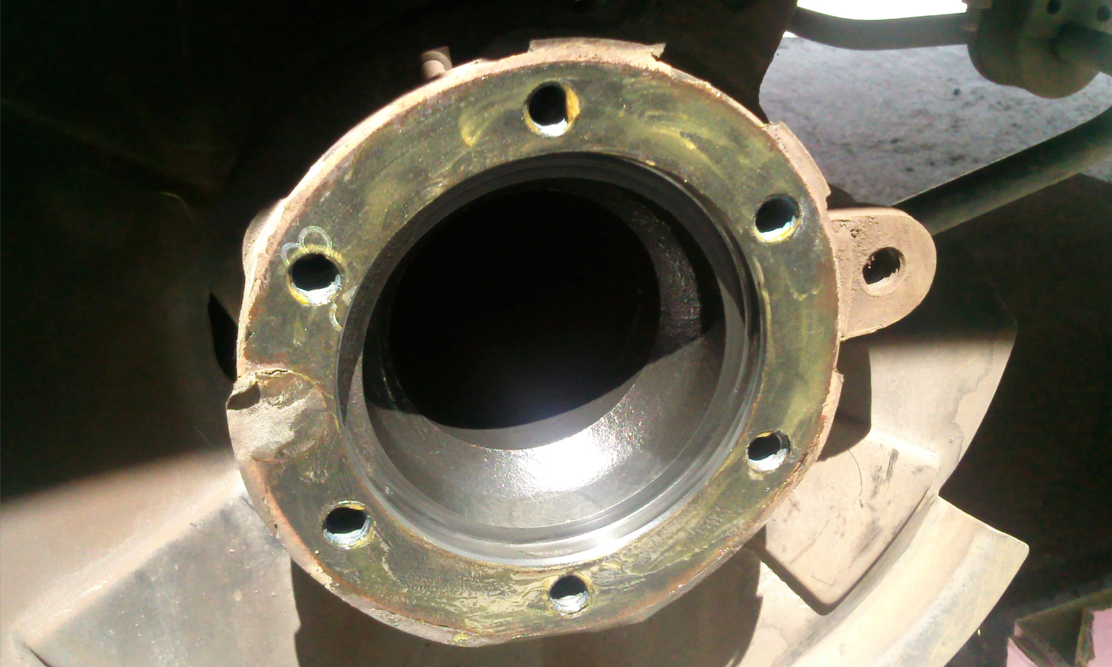 séparation du disque du moyeu, j'ai procédé avec délicatesse....en utilisant les plans inclinés de certains pied de biches et autres burains....(deux de chaque côtés pour la symétrie et.....de grand coups de marteau...voulait pas venir le bougre!!!