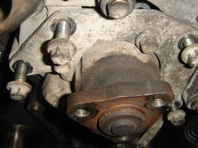 Je me suis aussi rendu compte que la lumière du carter de pompe n'était pas exactement en face de la lumière du moteur,on voit bien la trace de rouille sur le bloc moteur.