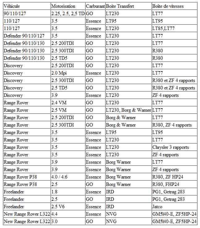 La Castrol Syntrax Universal 75W90 (recommandée par LR pour la LT230) devient Castrol Universal 75W90 (à ne pas confondre avec la Castrol Syntrax Universal Plus 75W90, qui est l'ancienne Dynadrive Plus, ni avec la Castrol Syntrax Universal 80W90, qui est l'ancienne Dynadrive 80W90).