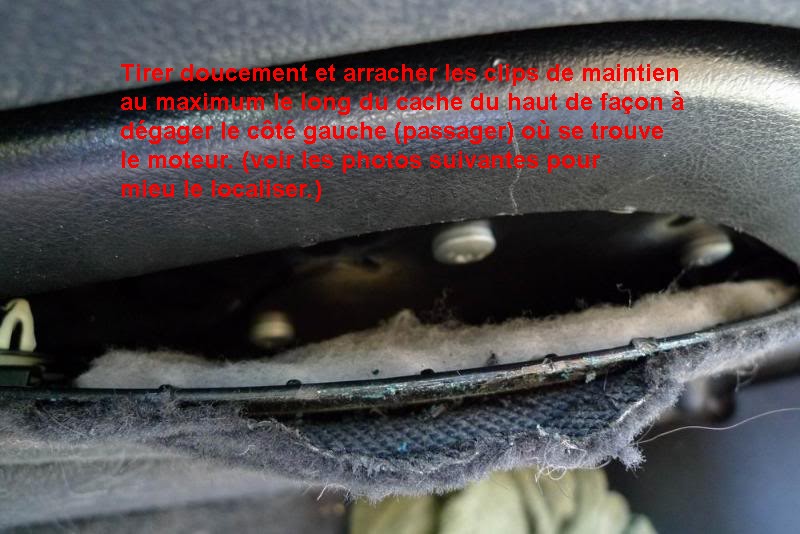 - il faut glisser la main vers ce cache plastique (pas évident car la place est étroite même en tirant au max sur la garniture)